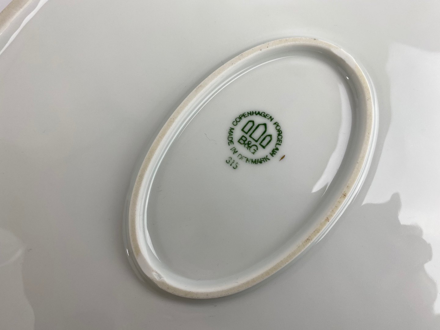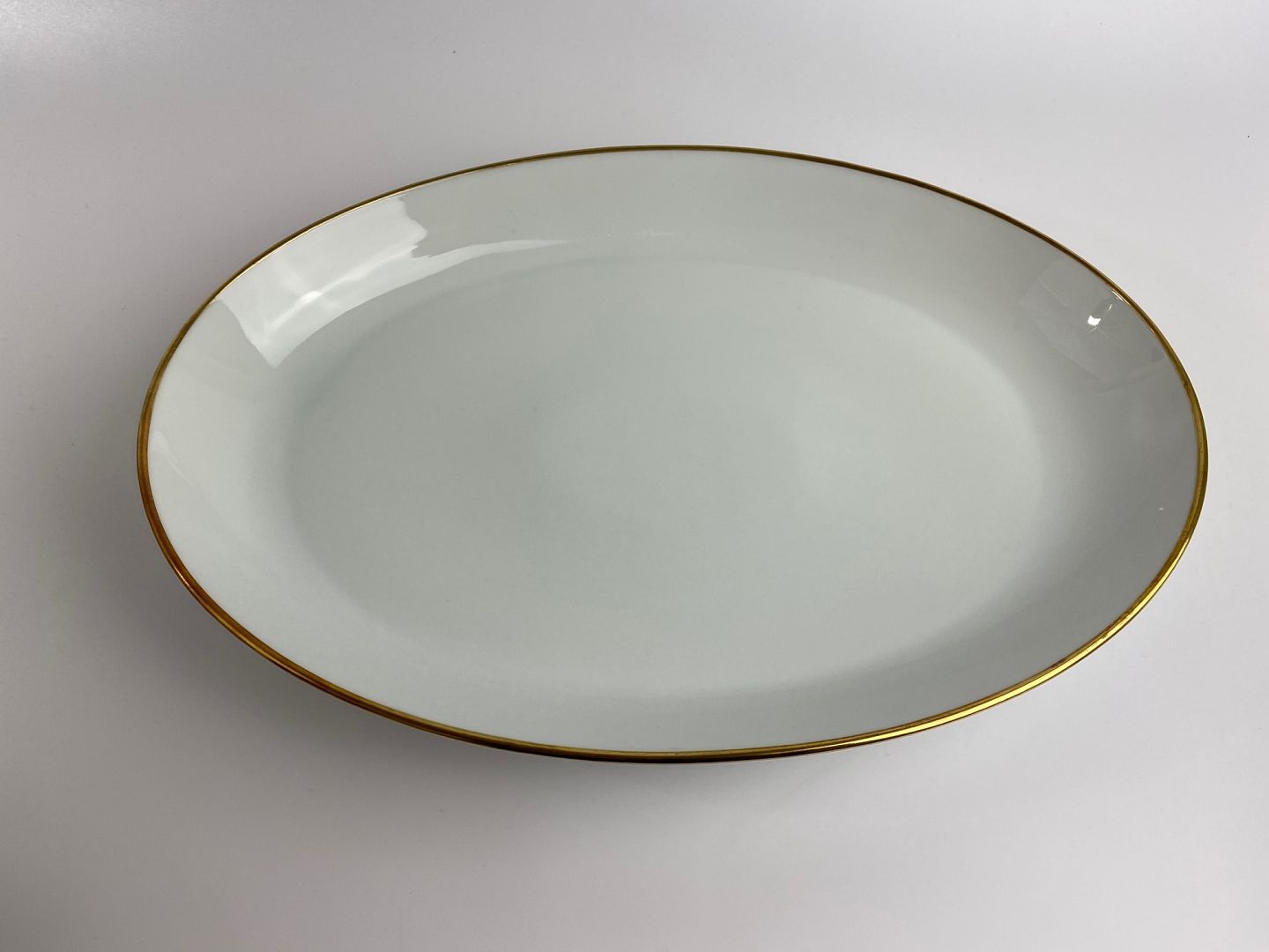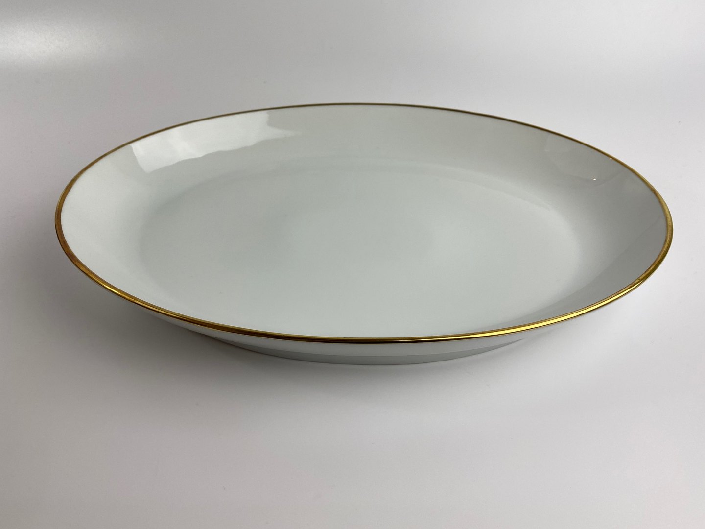 Stort Årestrup / Aarestrup serveringsfad fra Bing & Grøndahl i glat, hvidt porcelæn med guldkant nr. 315. (2 stk. haves).