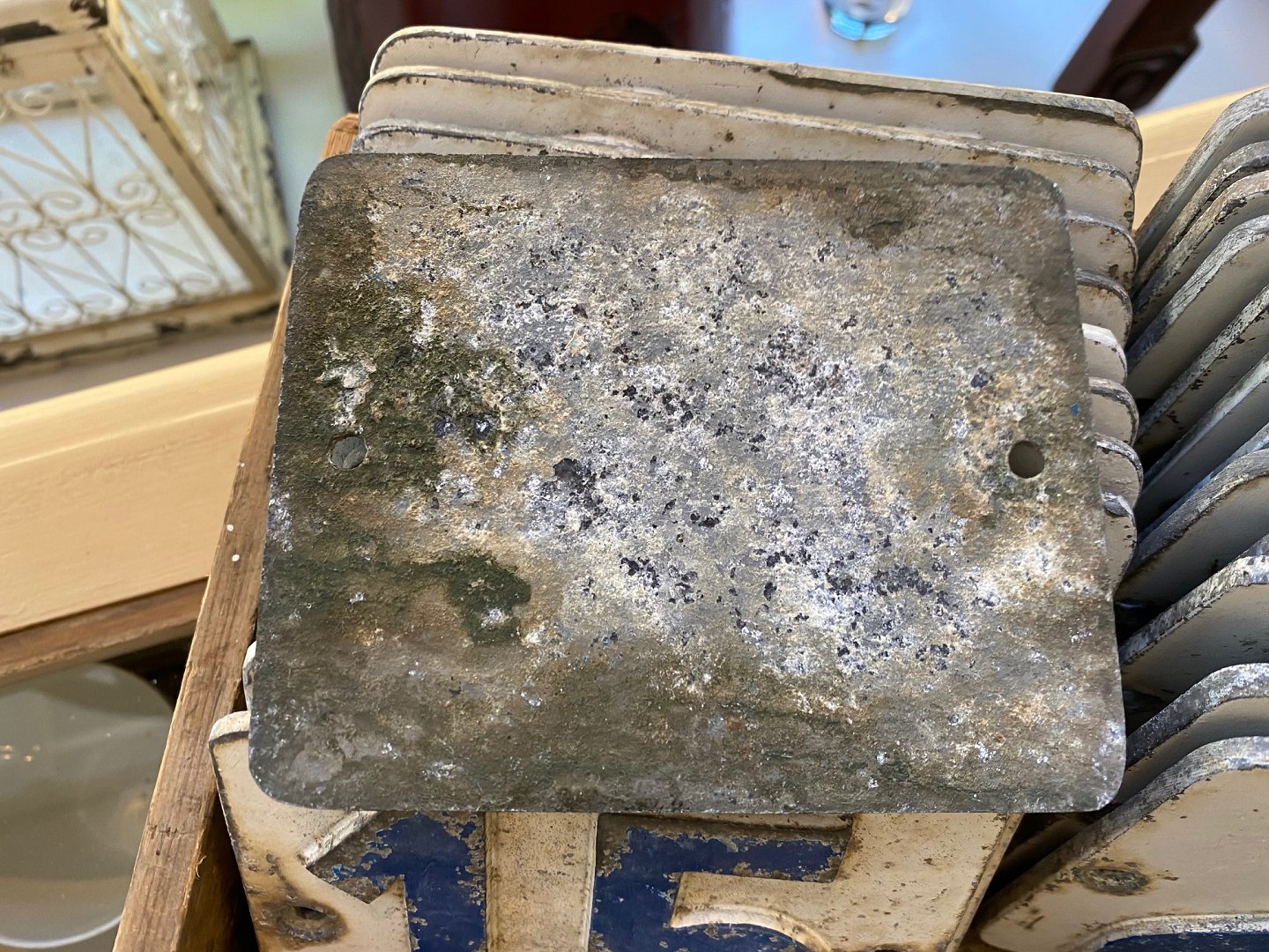 Smukke gamle husnumre, som kan bruges til villavejen eller opgangen, men også som et alternativt fødselsdagskort eller som dekoration med dine yndlingstal.