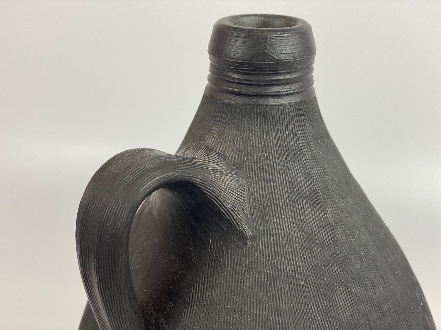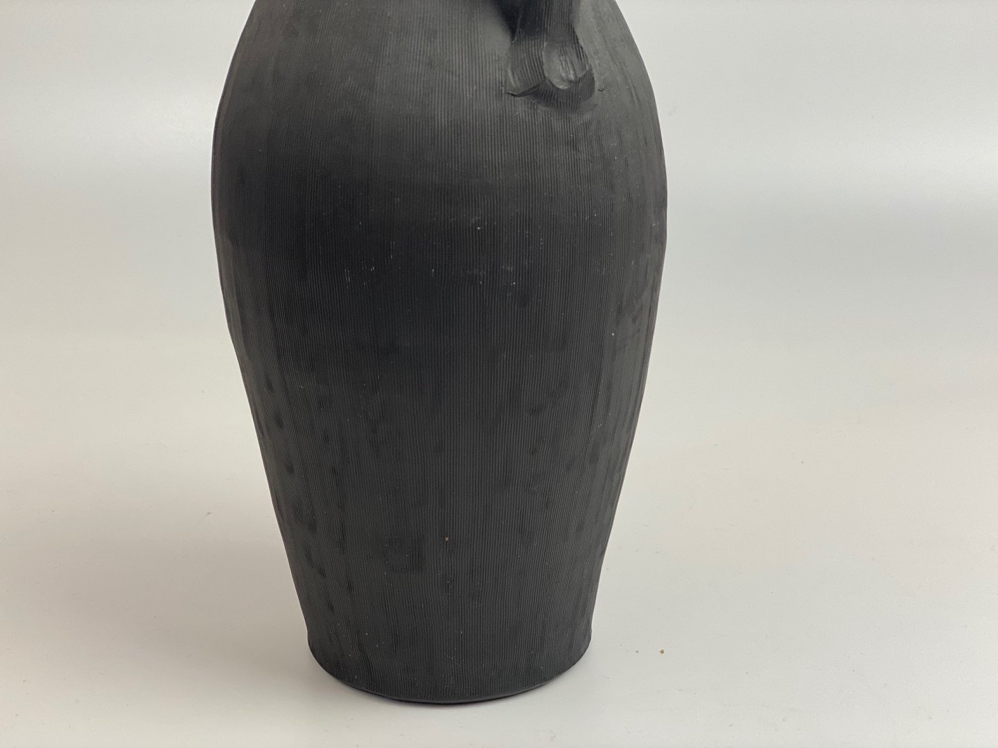 Large beautiful brown-black bottle vase from Dagnæs Keramik in the middle of the 20th century. The vase has an incised vertical pattern and is 33 centimeters high.