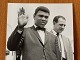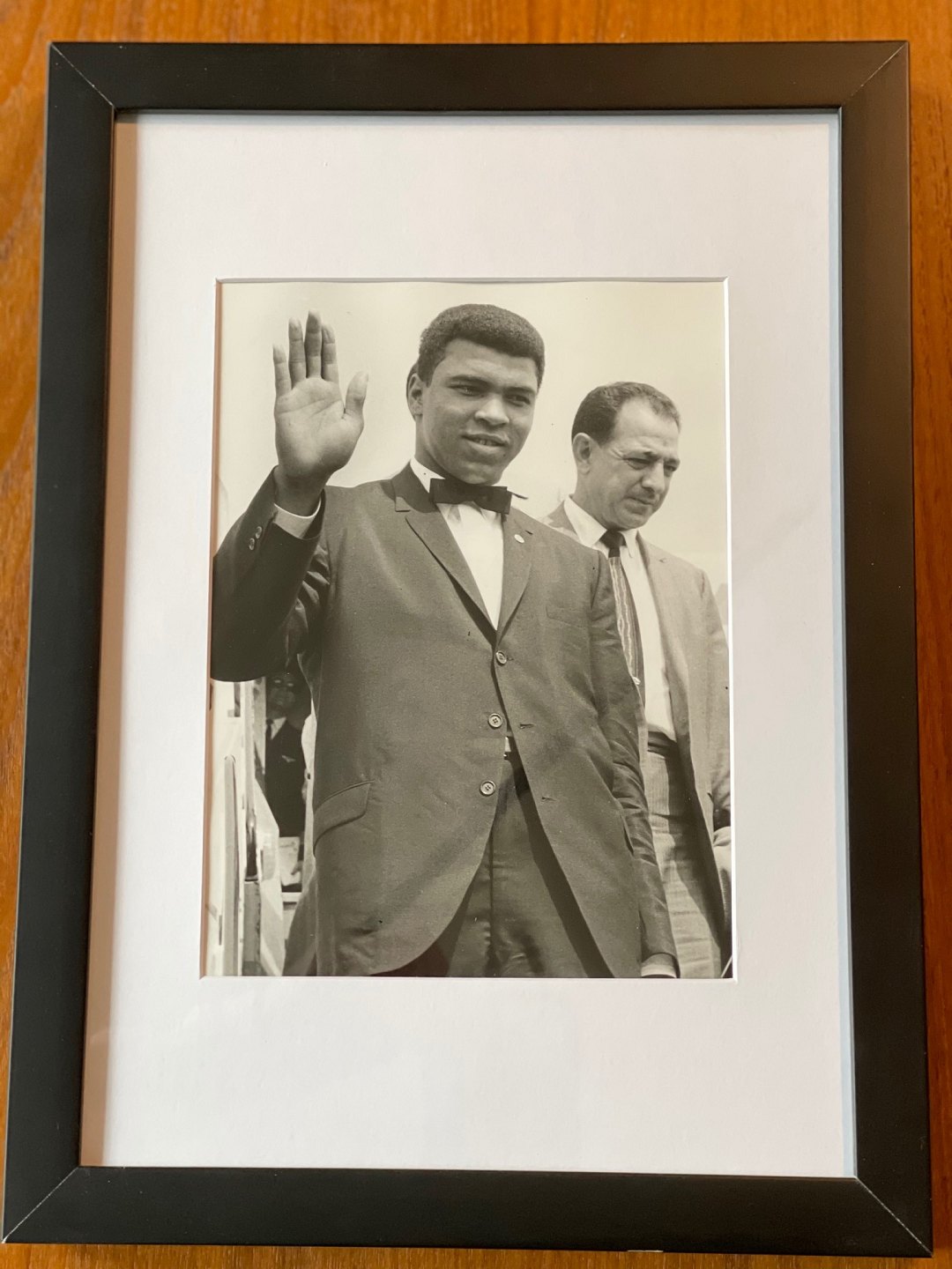 Der er tale om et originalt pressefoto af Muhammad Ali fra 1966 med almindelige brugsspor, herunder nogle vandrette streger henover billedet.