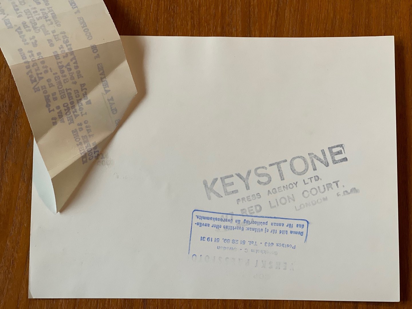 Billedet er også stemplet "Keystone Press Agency LTD" i London.