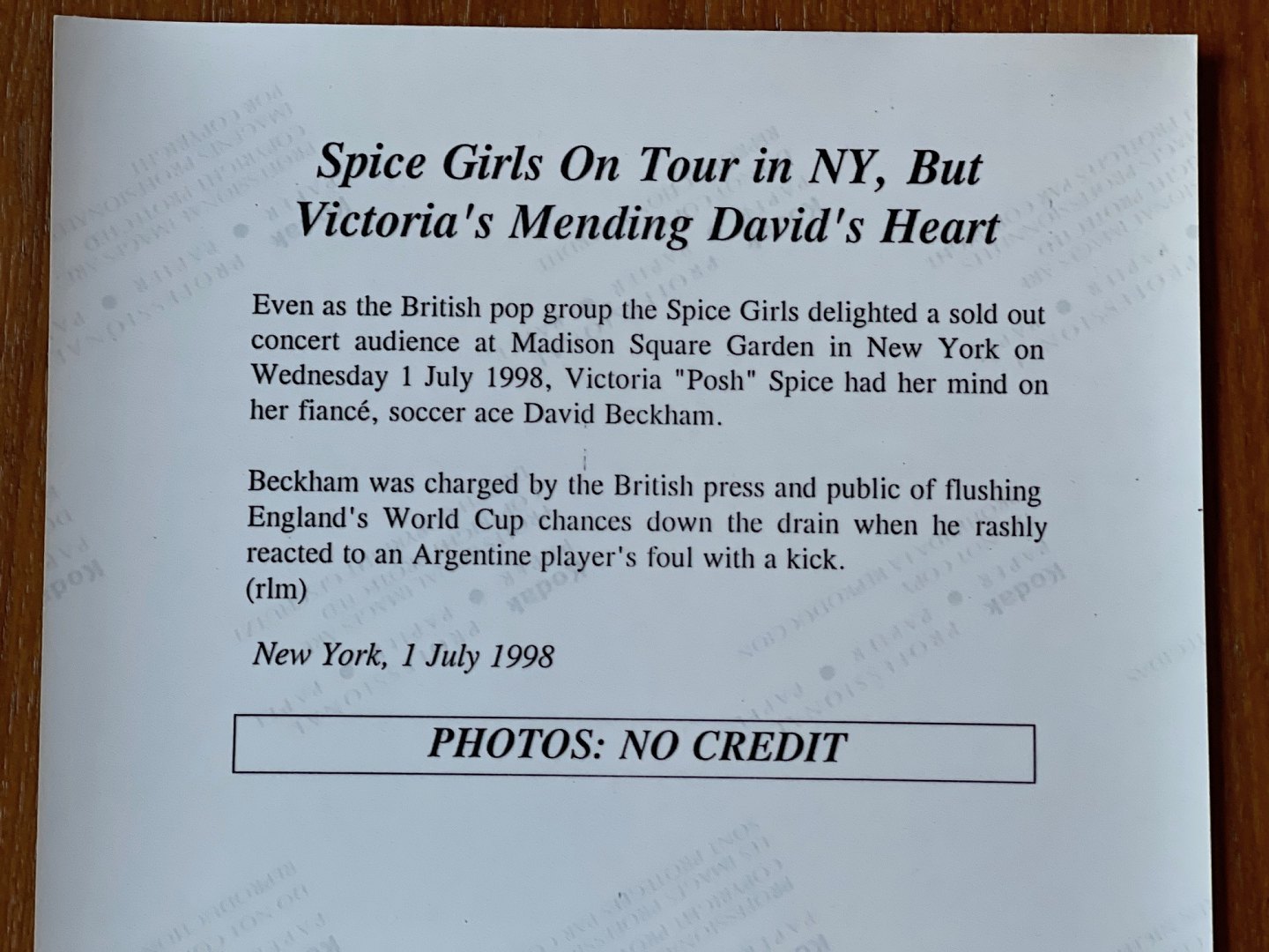 To originale, vintage pressefotografier af The Spice Girls under koncert i Madison Square Garden, New York, i 1998