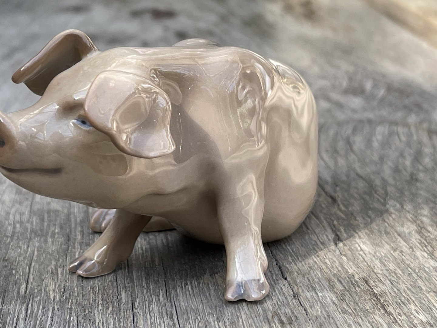 Seated porcelain pig, designed by Dahl Jensen for Bing & Grondahl, form no. 1582. Signed DJ in monogram. 2nd quality.