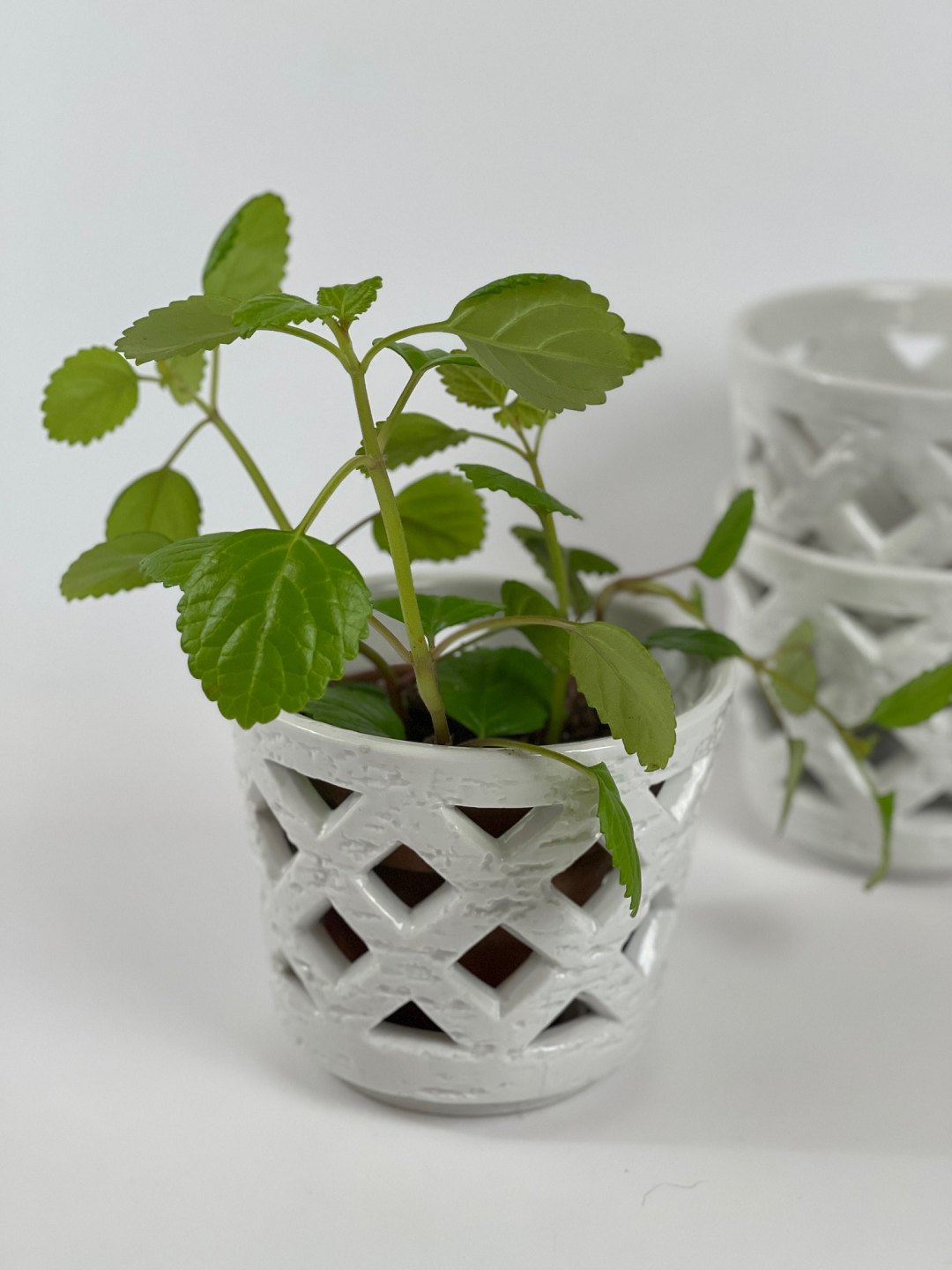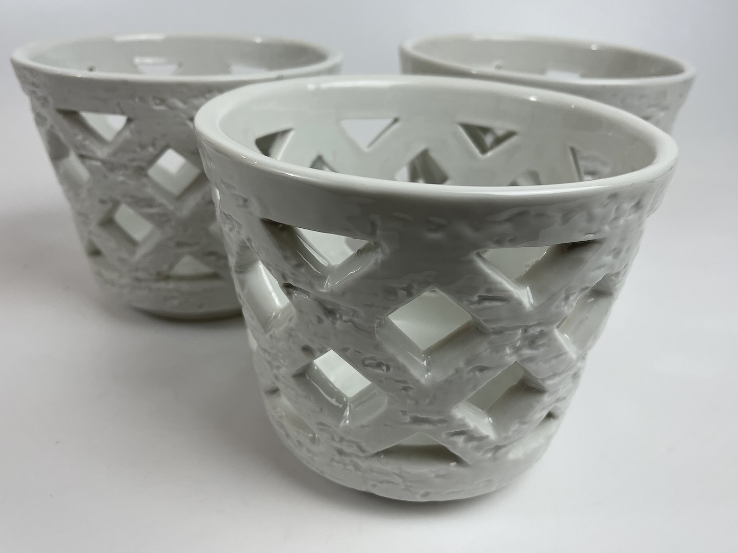 Gunnar Nylund for Rörstrand, set of three off-white chamotte flowerpots. The pots are all signed with Swedish Rorstrand's signature and with Gunnar Nylund's initials, GN.
