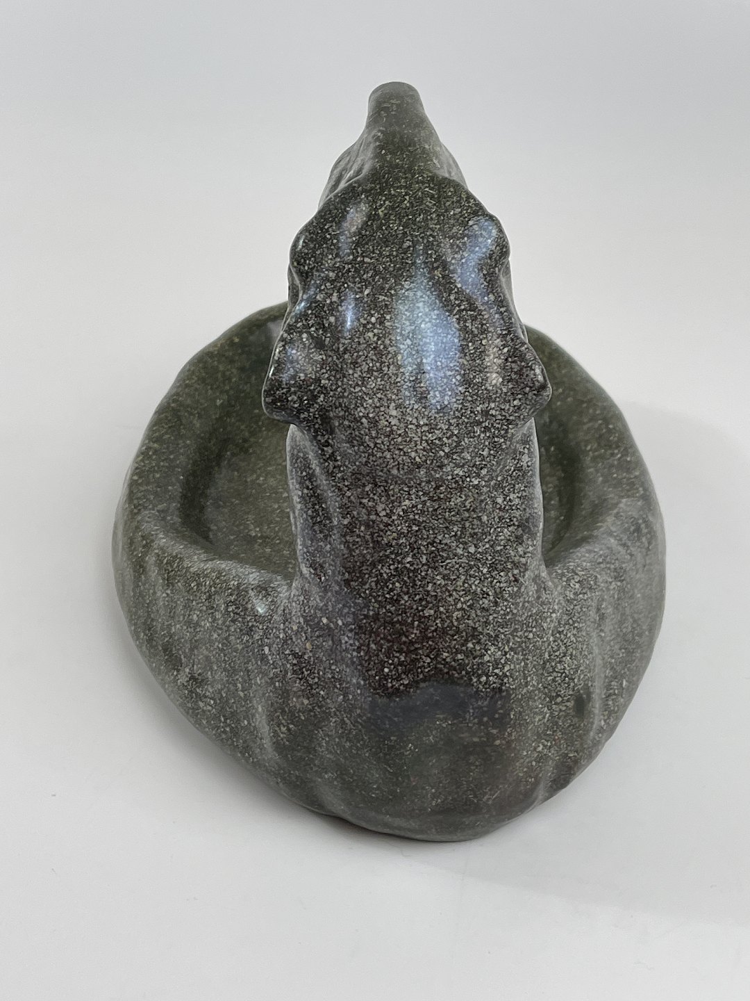 Michael Andersen & Søn, rare polar bear bowl in green mottled glaze alternating with gray mottled (at the back of the neck), first half of the 20th century.