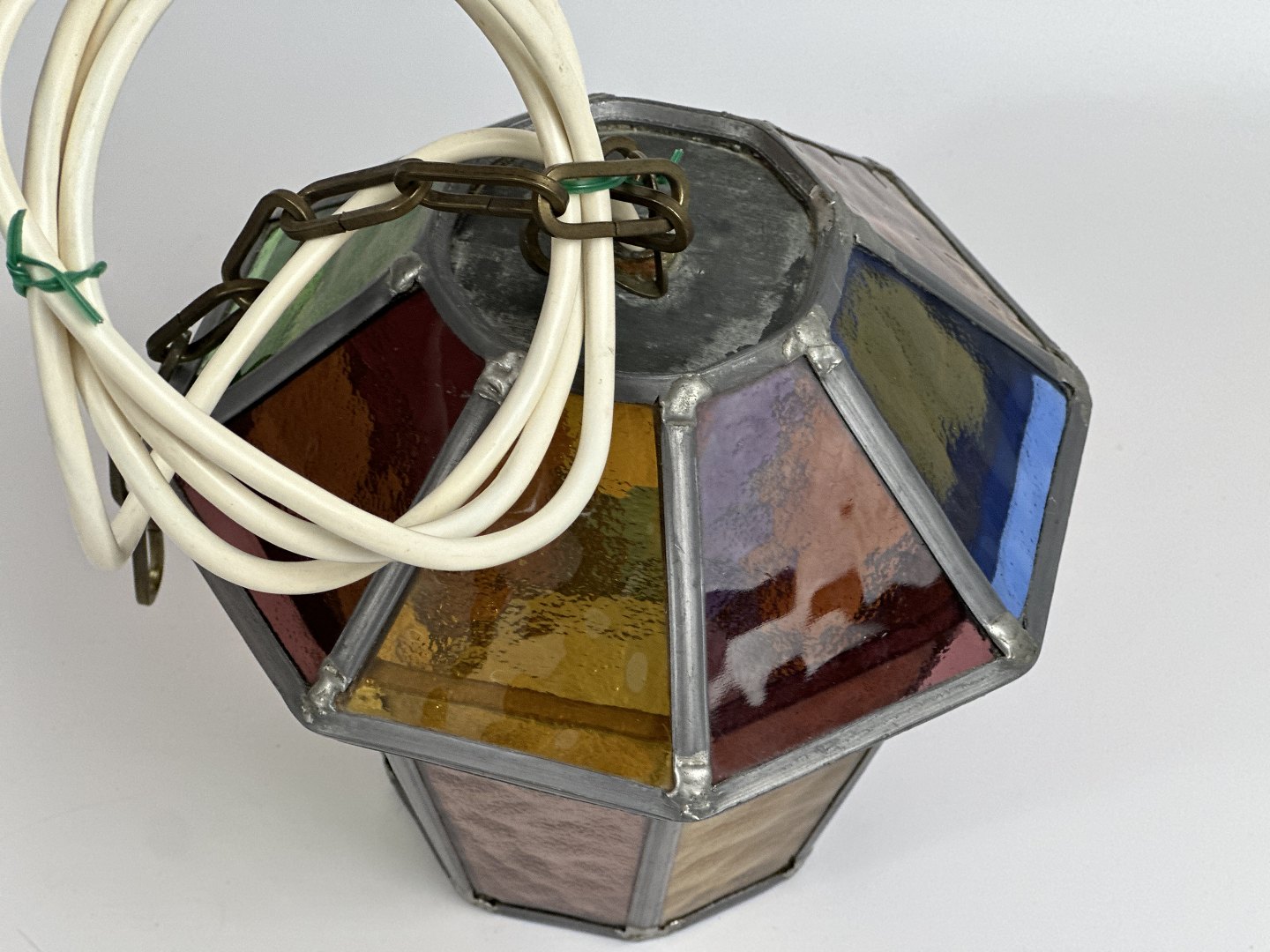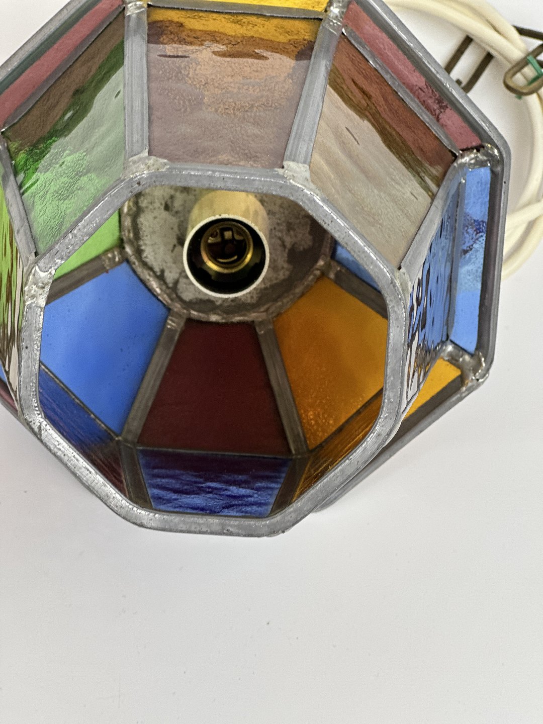 Lampe med blyindfattede glas i forskellige farver, vintage cirka 1960'erne.