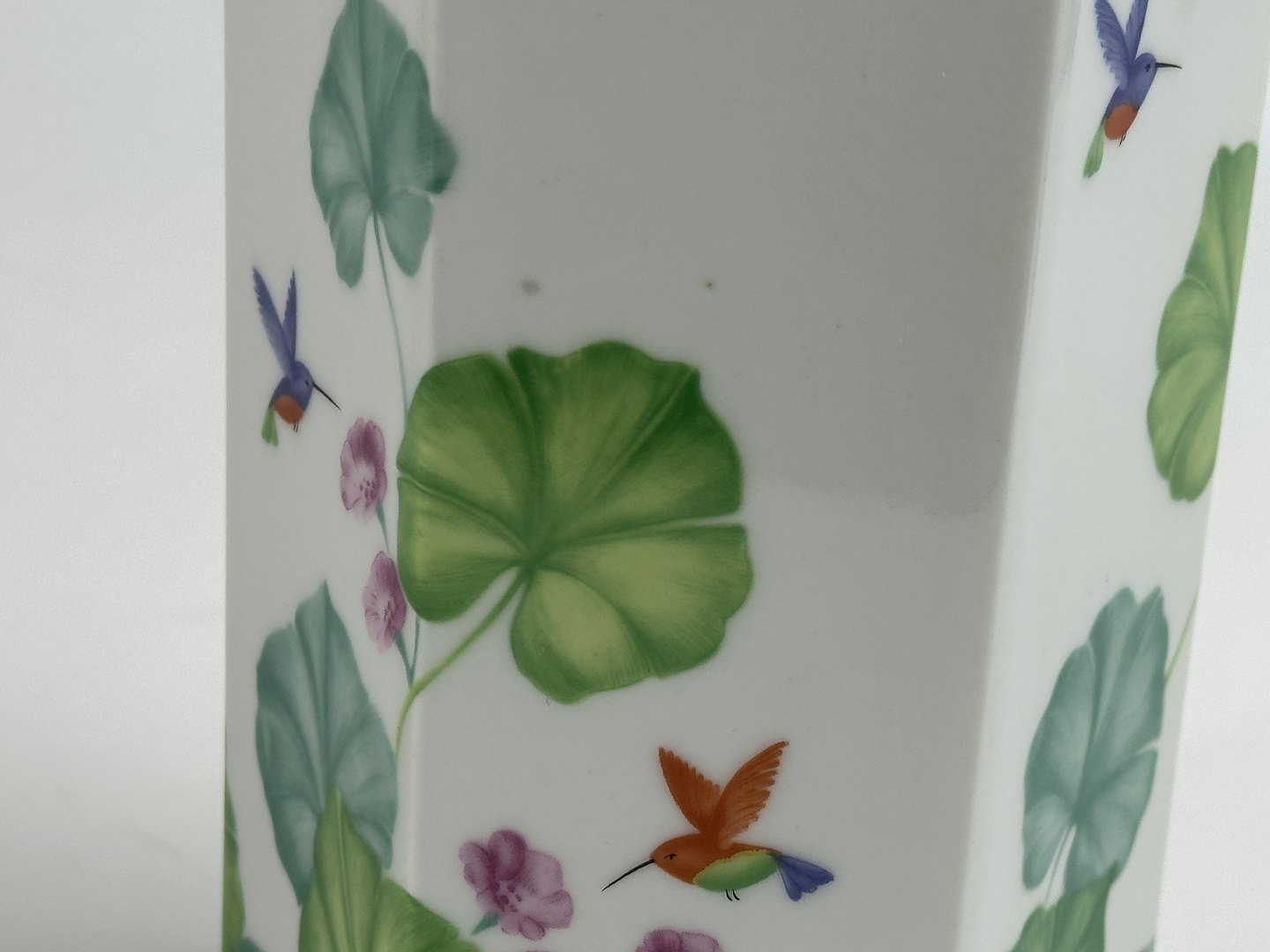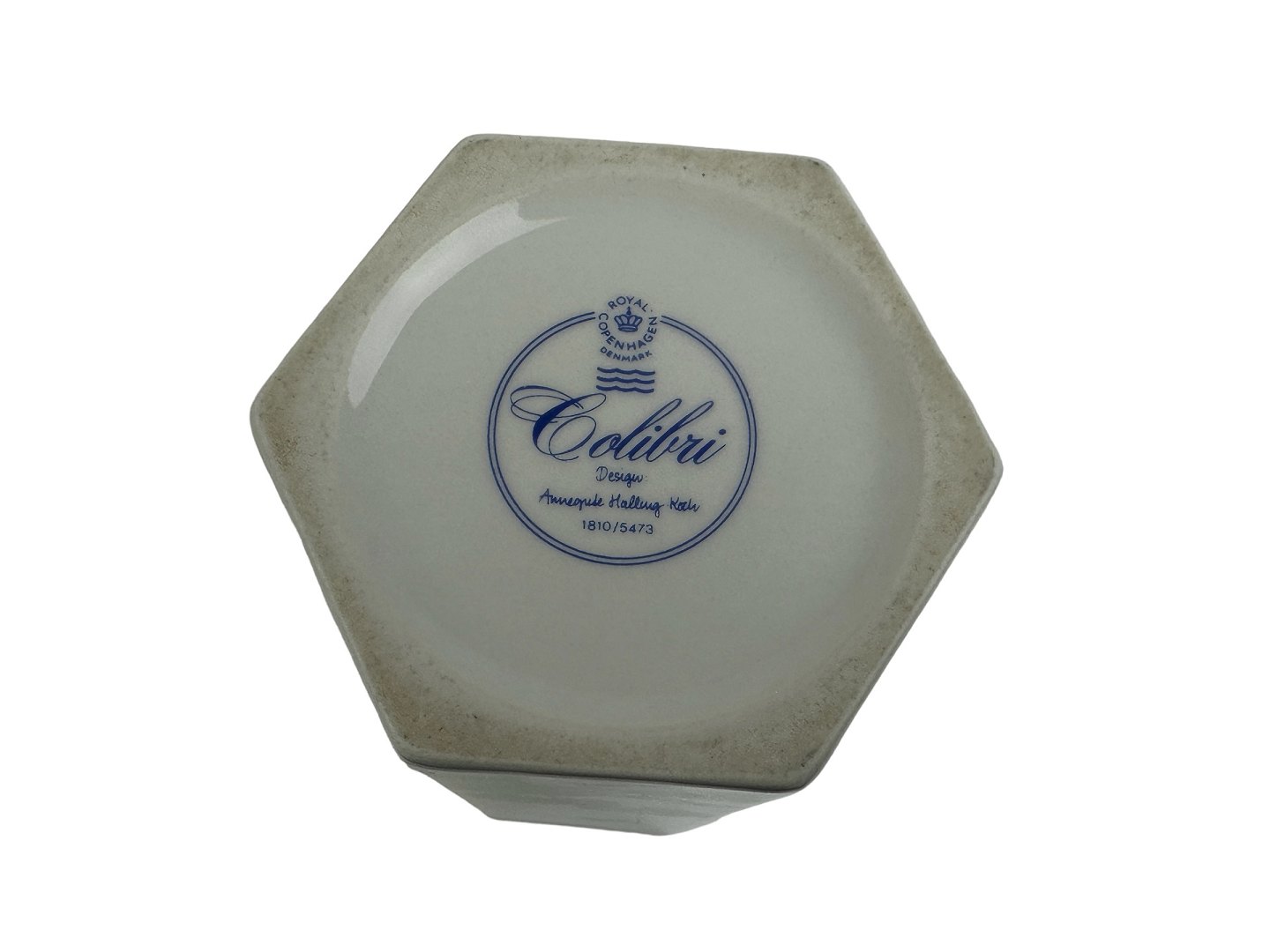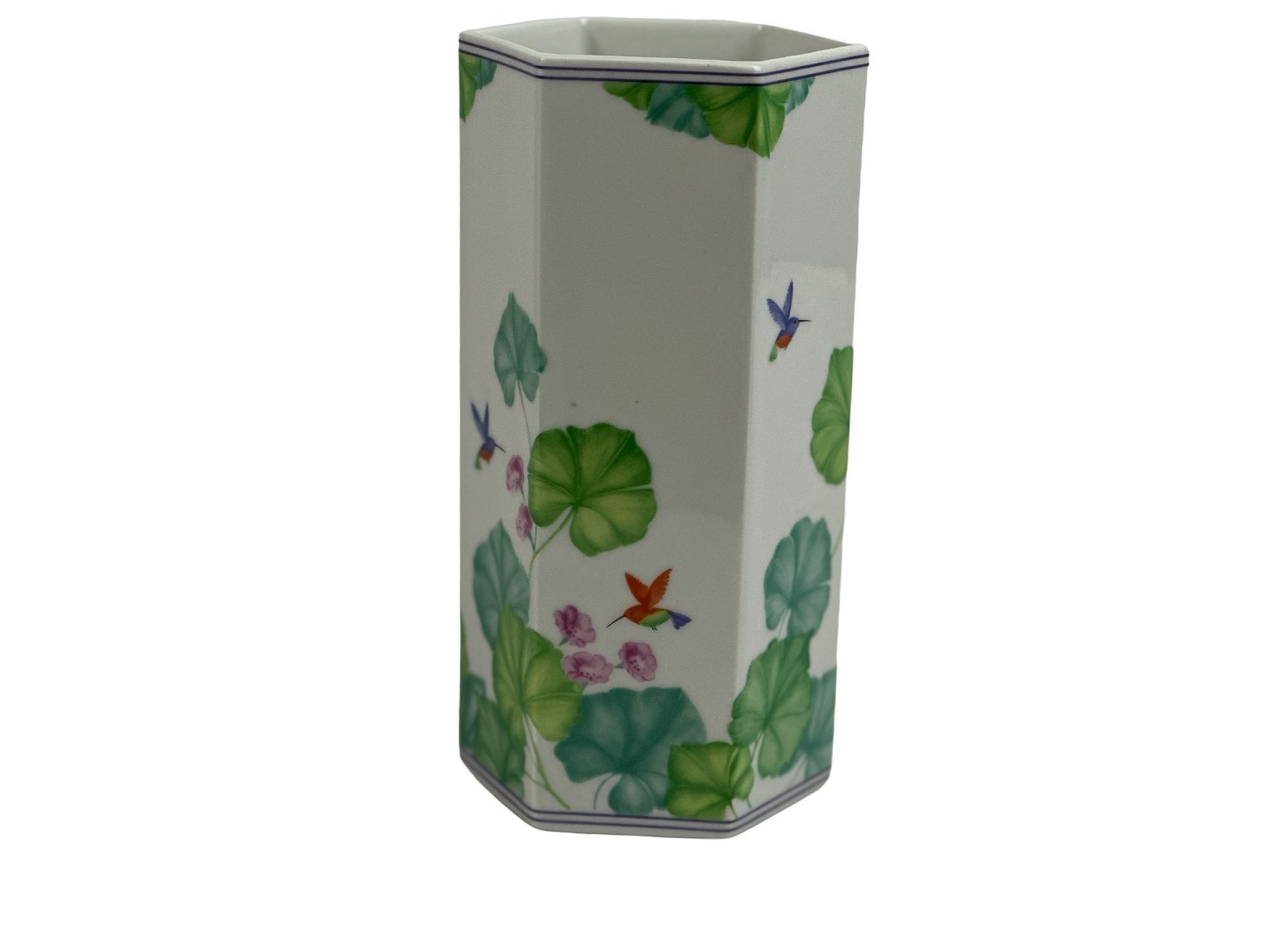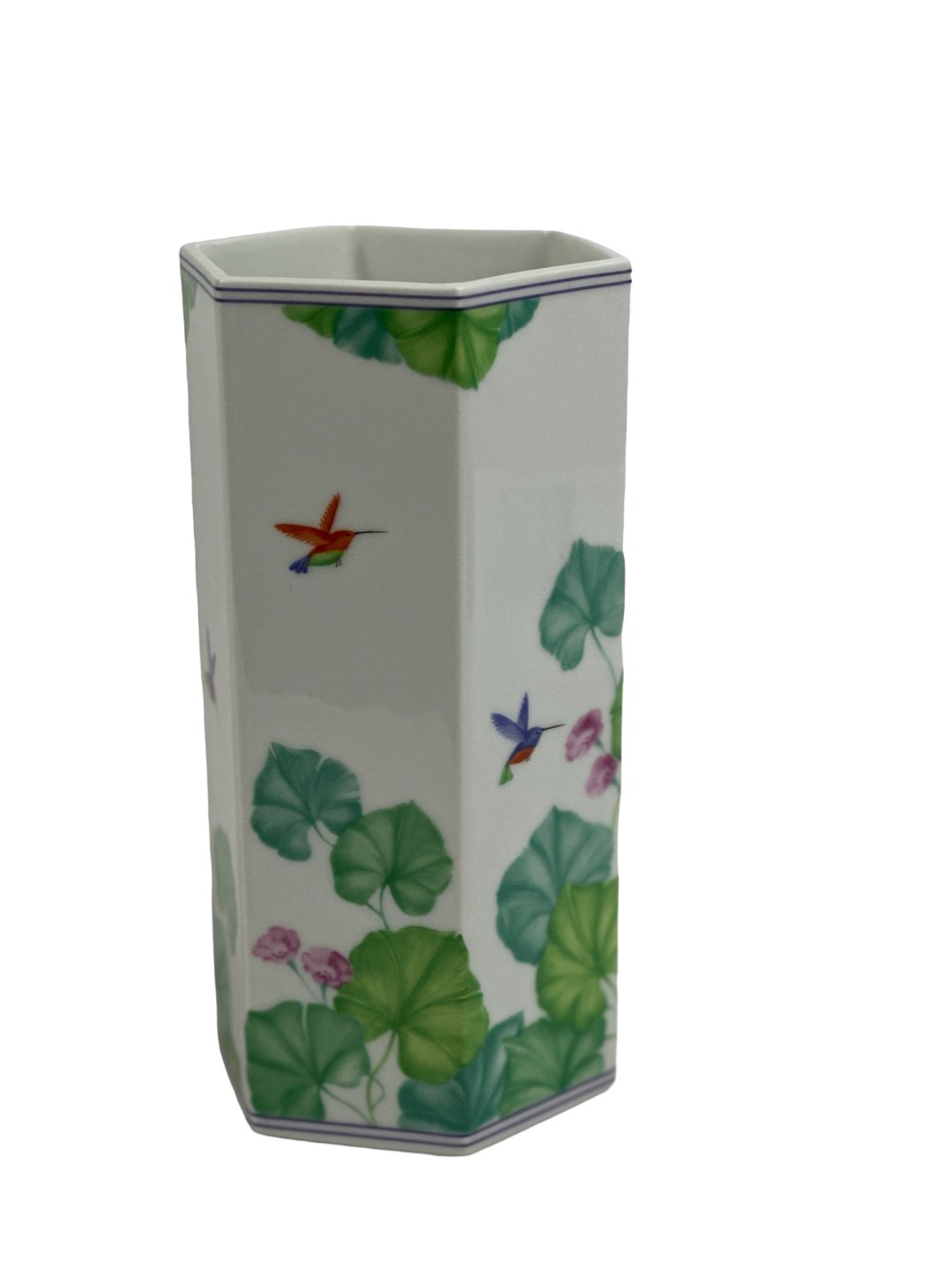 Large Colibri vase by Annegrete Halling-Koch for Royal Copenhagen. 1st sorting in very fine condition. Octagonal. Signed Annegrete Halling Koch 1810/5473. The vase is painted with flowers, leaves and birds (hummingbirds).
