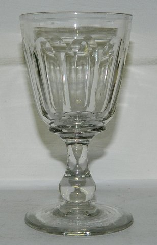 Maderaglas fra Holmegaard kat. 1853. Balusterformet stilk facetteret kumme. Bunden kugleslebet. I perfekt stand. Flot slid på bunden efter brug. 12 cm højt.