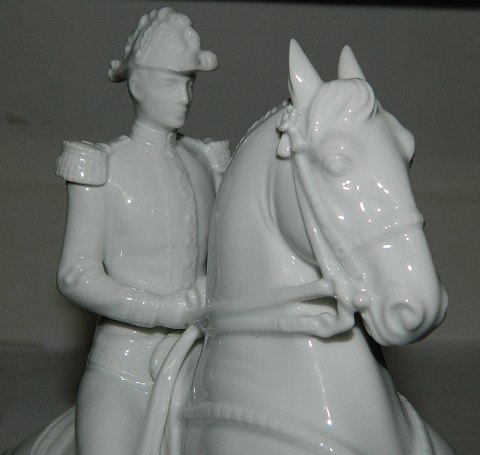 Hvid figur i porcelæn af rytter/officer på sin hest. Fremstillet hos Royal Vienna. I perfekt stand. 24½ cm høj.