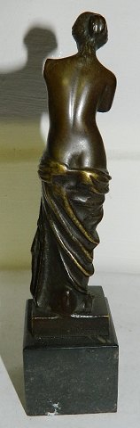 Figur i bronze af Venus fra Milo. Fremstillet for Louvre i Paris ca. 1950. Figuren fremstår i perfekt stand. 14½ cm høj. 19 cm incl. sokkel i sten.