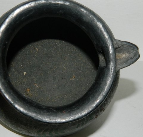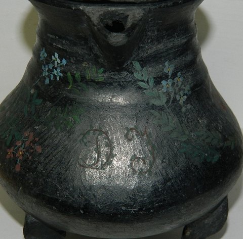 Jydepotte - Blomsterbemalet kande på tre ben med låg 19. århundrede