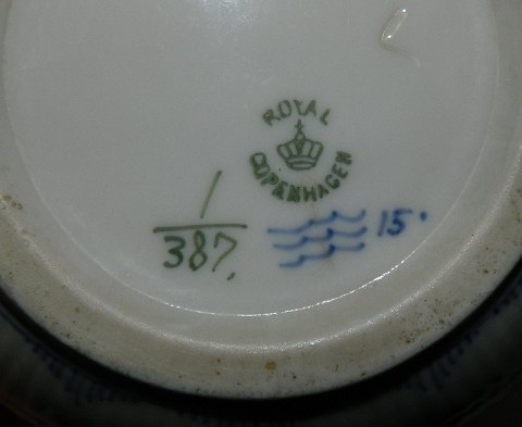 Mælkekande i porcelæn fra Royal Copenhagen med musselmalet dekoration. Modelnummer 1/387. Fremstår i perfekt stand. 2. sortering. Fabriksmærket på bunden. 16½ cm høj. LIGNENDE KØBES