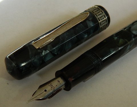 12-kantet blå/sort marmoreret Miller fyldepen