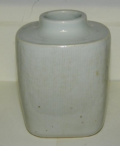 Vase i stentøj fra Bing & Grøndahl. Designet af Valdemar Pedersen. I perfekt stand. 1. sortering. Dækket af en grå glasur. Fabriksmærket samt kunstnersignatur på bunden. 14 cm høj.