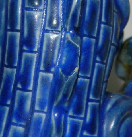 Wilhelm Kaage - Dragevalp. Gustavsberg ca. 1940 Fremstillet i stentøj. Dækket af blå glasur. Stempelsignatur GUSTAVSBERG 4 samt studiostempel og KÅGE. Mindre skår på rygfinnen. Fabriksfejl. Glasur henover skåret ! Ellers i god stand. 11½ cm høj.