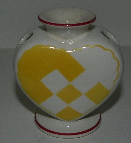 Vase i keramik med svag blålig glasur. Udført af Christian Poulsen (1911-1991) på eget værksted. Dekoreret med geometrisk mønster rundt om vasen. Fremstår i perfekt stand. Kunstnersignatur CHR. P. samt modelnummer på bunden. 11 cm høj og 12½ cm i diameter.