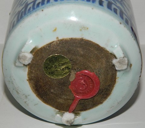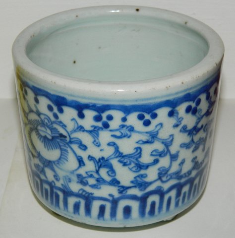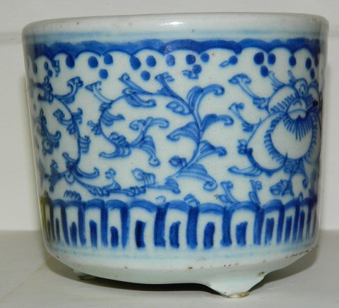 Skål i porcelæn på fødder. Dekoreret i blåt. Fremstillet i Kina 19. århundrede. Fremstår i perfekt stand. Ingen skader eller reparationer.