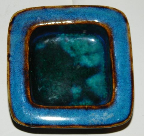 Small four-sided tray in stoneware by Christian Poulsen. Covered in blue glaze. Is in perfect condition. Signed on the back by the artist. 3½ cm highand bottom measures 8½cm x 8 ½ cm.