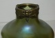 Glasvase i Art Nouveau stil: Grøn glasvase i organisk form fra Loetz i Bøhmen fra ca. 1900. Dekoreret med gulssmede i metal rundt om vasens åbning. Både glas og metal i perfekt stand. Vasen er 10 cm høj