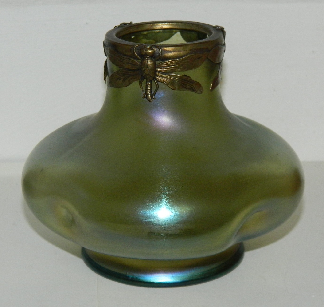 Art Nouveau: Bøhmisk Loetz glasvase med guldsmeddekoration