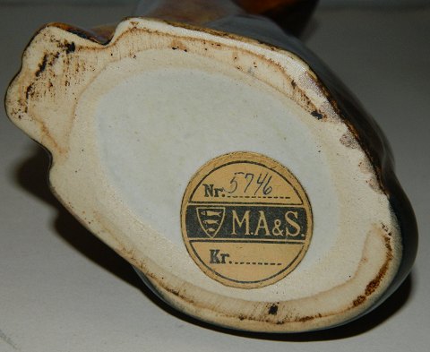Brunt glaseret figur af kat i keramik fra Michael Andersen & Søn, Bornholm. Fremstår i perfekt stand uden skader eller reparationer. Fabrikslabel på bunden MA&S. 24½ cm høj .