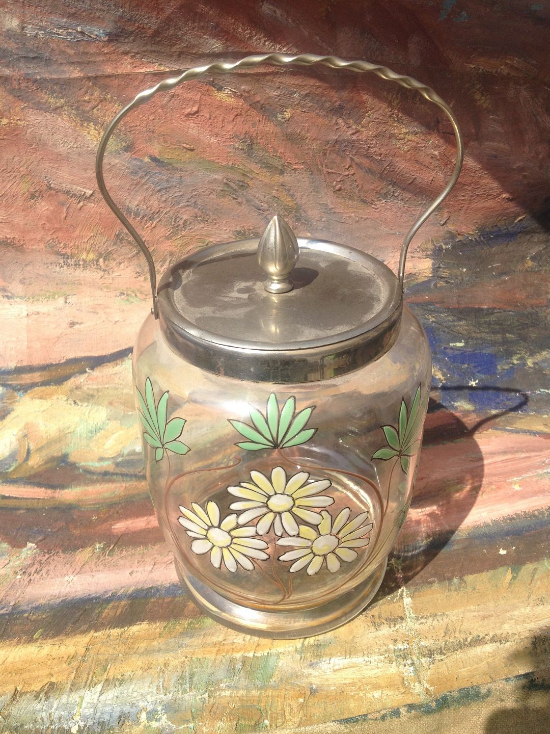 Kiksespand eller bisquitspand fra Fyns Glasværk med bemalet motiv med blomster. Nummereret på bunden. Fremstår i perfekt stand. 20 cm høj incl. Toppen af låget.