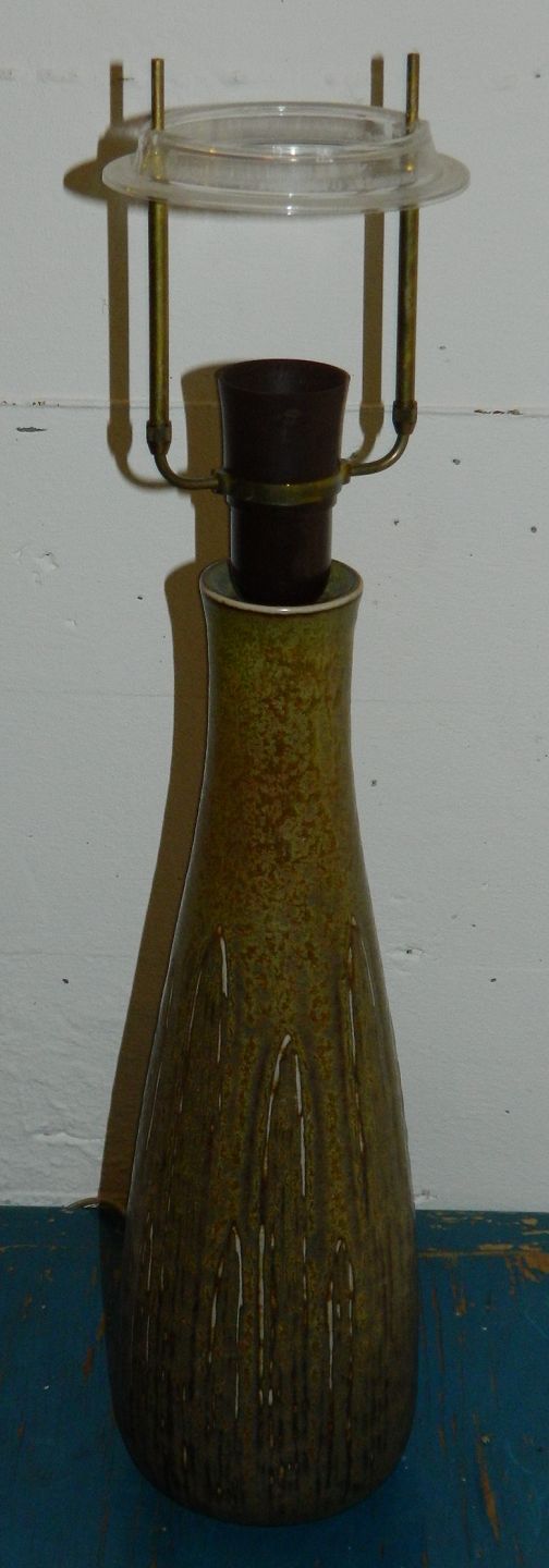 Lampefod i stentøj fra Royal Copenhagen. Dækket af en smuk solfatara-glasur. Designet af Gerd Bøgelund. Fremstår i god stand uden skader eller reparationer. 1. sortering. Trænger dog til ny ledning ! Mål: 36½ cm - 53 incl. montering.