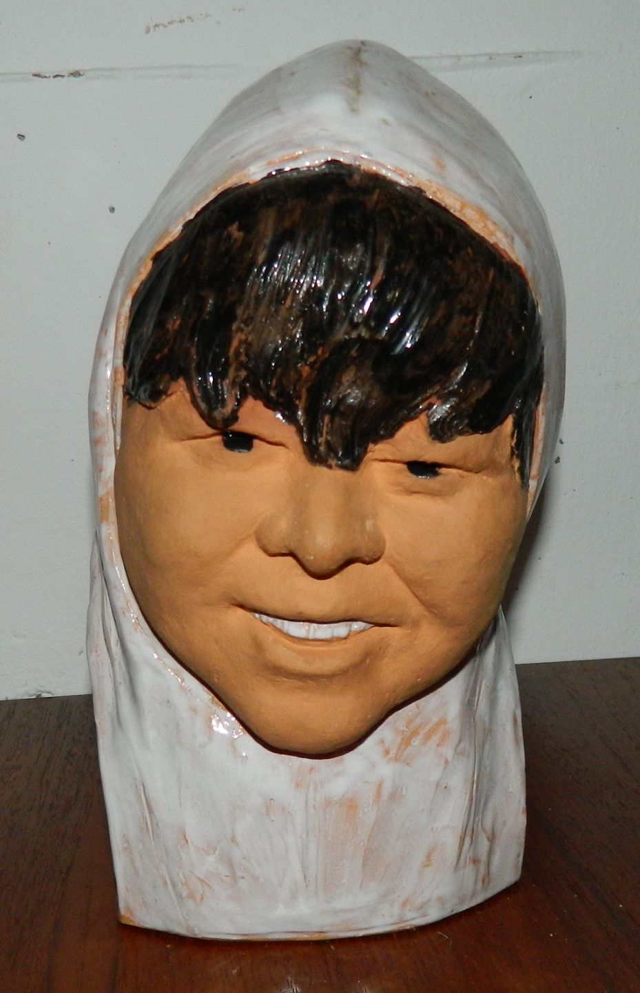 Buste i keramik af dreng i nationaldragt fra Grønland. Fremstår i god stand uden skader eller reparationer. Signeret af ubekendt kunstner J. B. i 1950. Fabriksmærket på indersiden. 23½ cm høj.