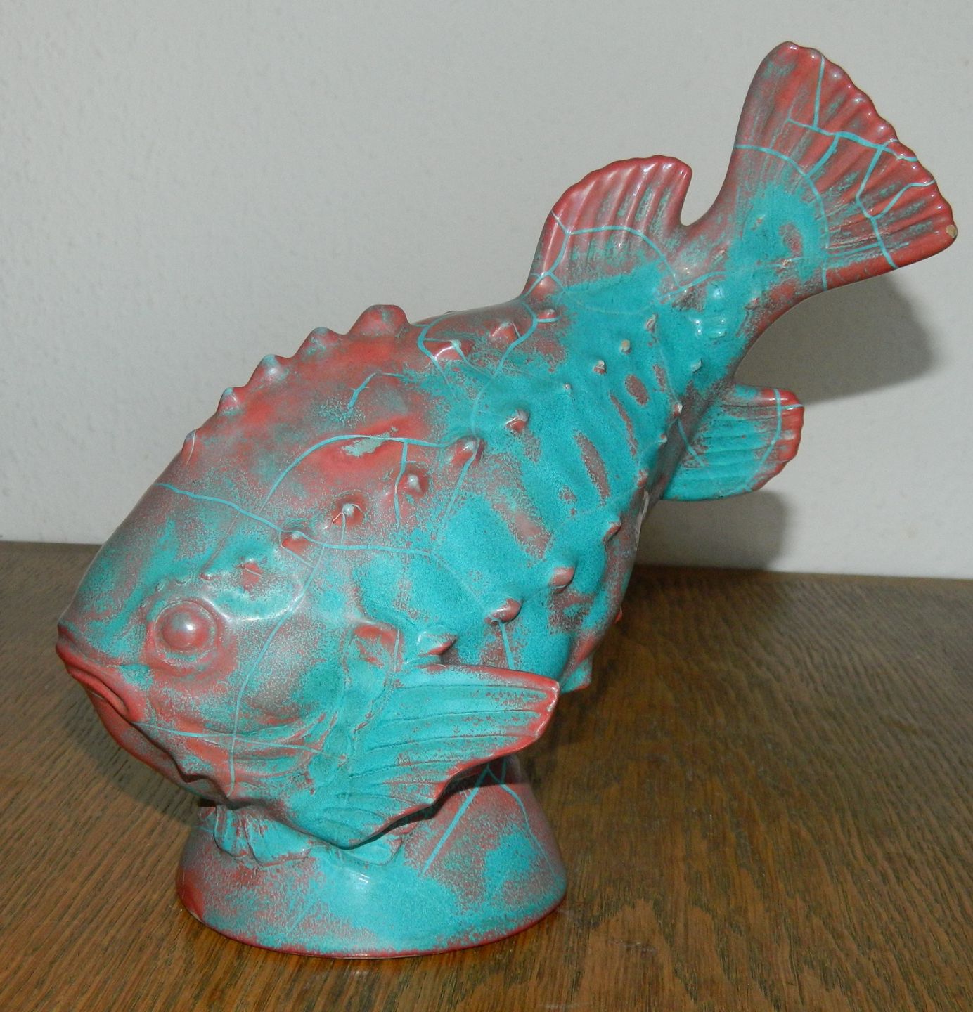 Figur i keramik af stenbider fra Peter Ipsens Enke. Dækket af en smuk rød og grøn Danit-glasur. Fremstillet i 1930´erne på Ipsen fabrikken i København. Fremstår i god stand uden skader eller reparationer. Har dog tre meget små glasurafslag. Èt ses på billed ! Fabriksmærket på bunden med Krone samt PIE. Stemplet er næsten dækket af glasuren. Figuren er 22 cm høj.