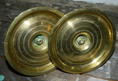 Par messingstager / Næstvedstager i messing. Fremstillet i første halvdel af 19. århundrede. Fremstår i god stand. 13 cm høje og fodens diameter er 10½ cm.