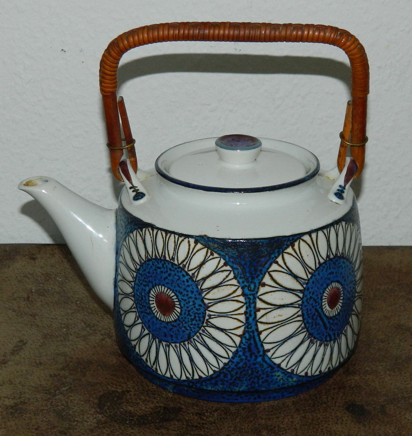 "Anette" Tepotten i fajance fra Royal Copenhagen Kgl. Designet af Berte Jessen i 1963. Fremstår i perfekt stand. 1. sortering. Modelnummer 550/3319. Tepotten er 14½ cm høj ex. hank. Fabriksmærket på bunden.