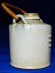 Tepotte i keramik af Finn Lynggaard fra eget værksted. Dækket af en lys grålig glasur. Hank i bambus i god stand. To små overfladeridser på kanten nederst på låget (se foto). Stemplet kunstnersignatur samt logo på undersiden. 15½ cm høj. 21½ cm høj incl. opretstående hank.