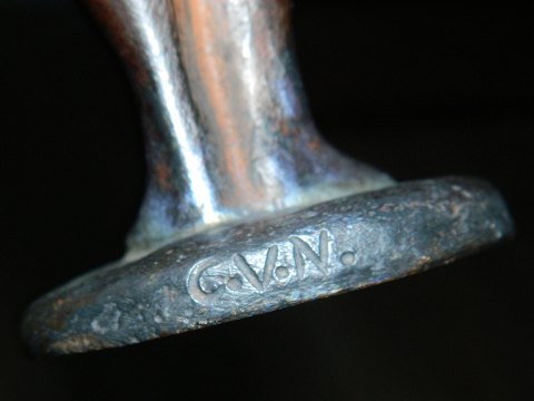 Figur af stående nøgen kvinde udført i bronce af den danske billedhugger Carl Vilhelm Nielsen (1890 - 1961) Unika arbejde. Fremstår i perfekt stand. 22½ cm høj Stemplet.: C.V.N. Fremstillet omkring 1930.