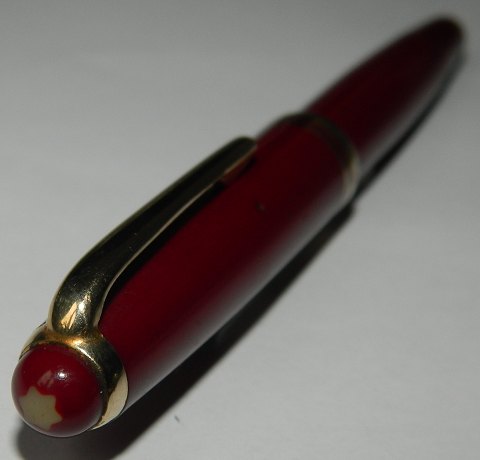 Bordeaux Montblanc 252 fyldepen med piston påfylder. Klar til at blive brugt. Fungerer fint. Alle dele originale Montblanc inclusive 585 guld spids. 12½-13 cm lang.