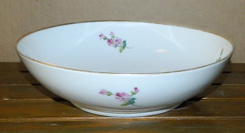 Skål i porcelæn fra Royal Copenhagen i Saxisk Blomst. 2. sortering. Fremstår i god stand. Har dog lidt lidt på guldet på kanten. Mål: 6 cm høj og diameter på 21 cm.