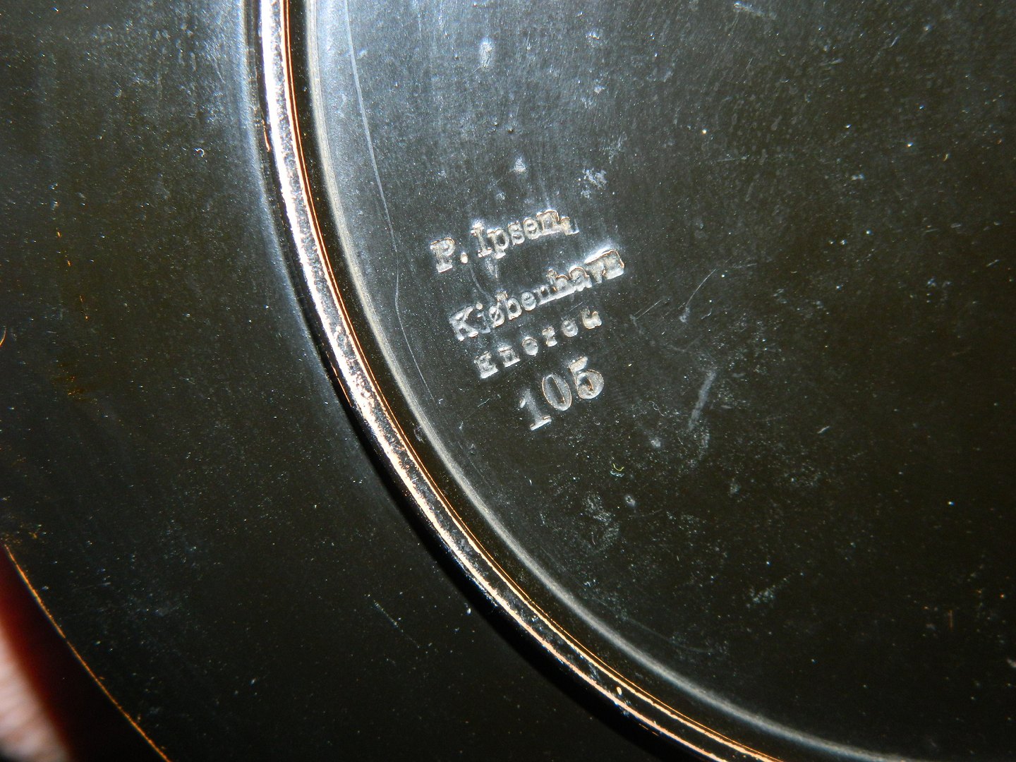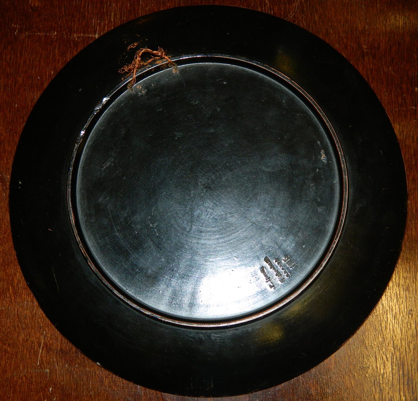 Bemalet portræt af pointer hund af den danske kunstner Vilhelm Th. Fischer (1857-1928). Han har især malet og tegnet dyr fra den danske natur. Endvidere skaberen af flere store arbejder af bl.a. fugle i porcelæn for Royal Copenhagen. Her har kunstneren brugt olie maling på en terracotta platte fra den københavnske keramikfabrik Peter Ipsen til sit portræt. Motivet er signeret af kunstneren med navnetræk samt fremstillingsår 1913. Overfladen af motivet i god stand. På bagsiden ses et par små skår på inderkanden på platten (se foto). Platten fabriksmærket på bagsiden. Mål: 24½ cm i diameter.