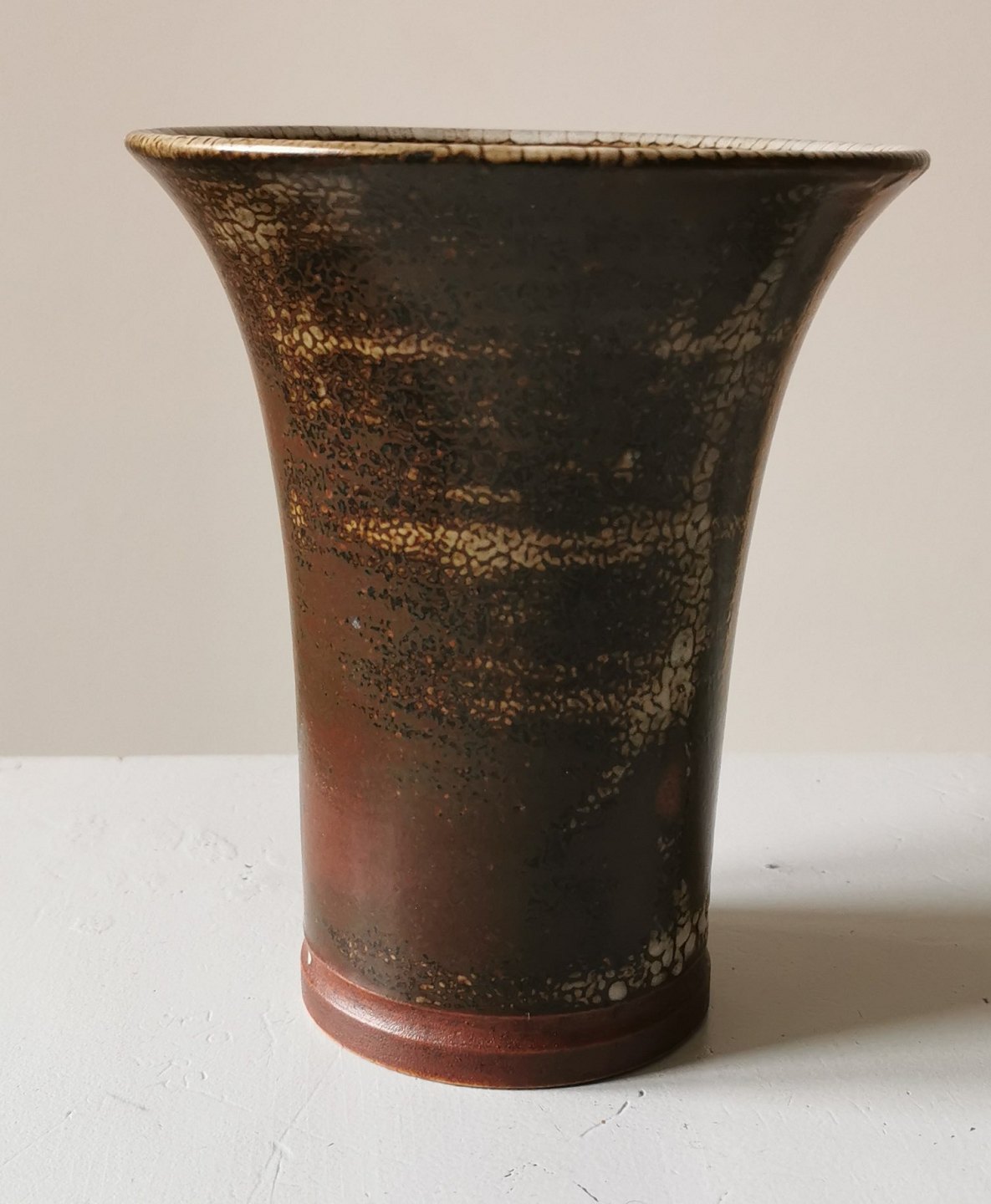 Tidlig Saxbo vase i stentøj fra ca. 1930. I perfekt stand. Ingen skader eller reparationer. Fabriksmærket på bunden. H. 18½ cm Ø. 15½ cm.