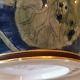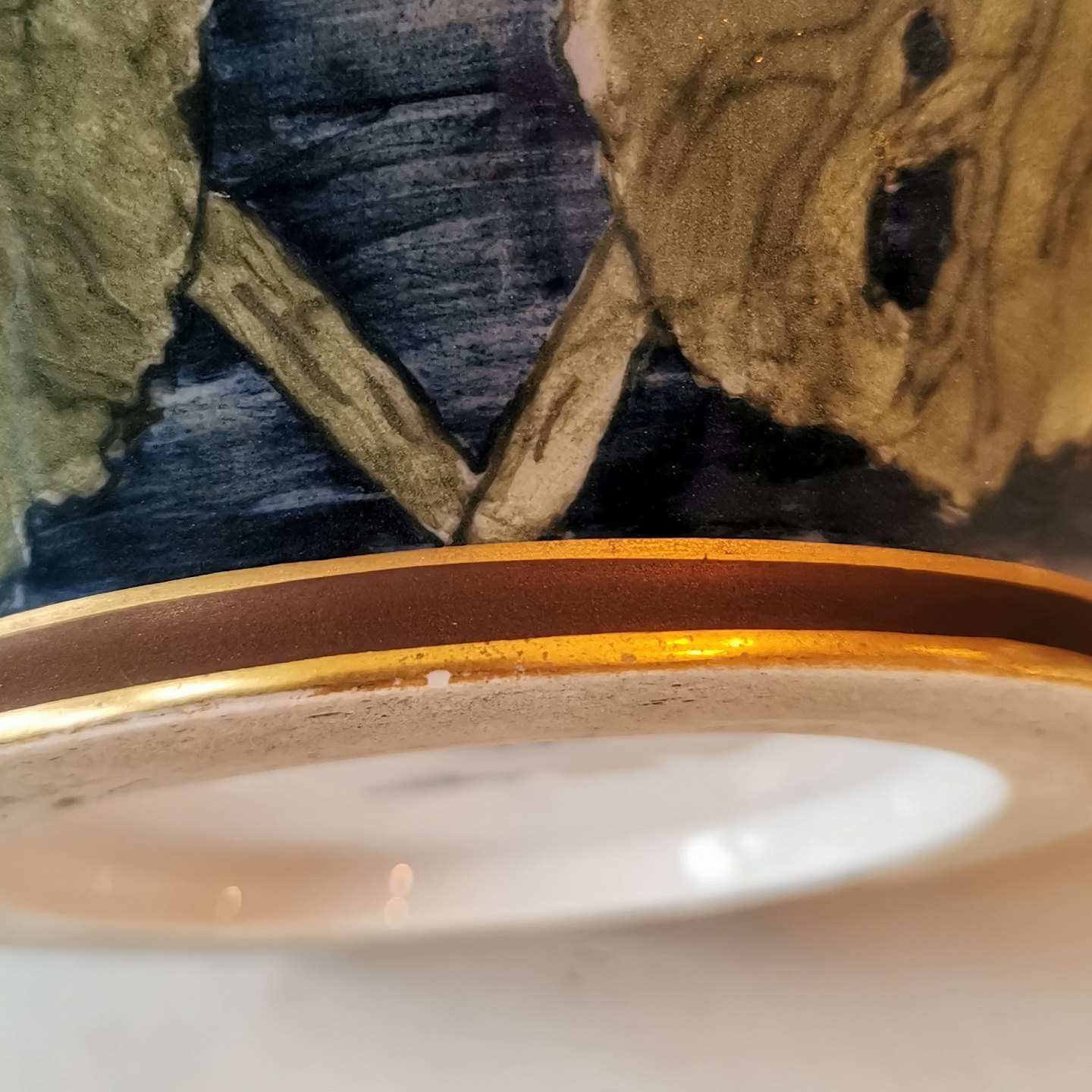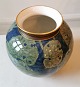 Krukke i porcelæn fra Royal Copenhagen med bemalet dekoration af åkander. Har tre små skår på bundens kant (foto af alle skår). Fabriksmærket på bunden 1880´erne. Mål: H. 22 cm Ø. 21 cm.