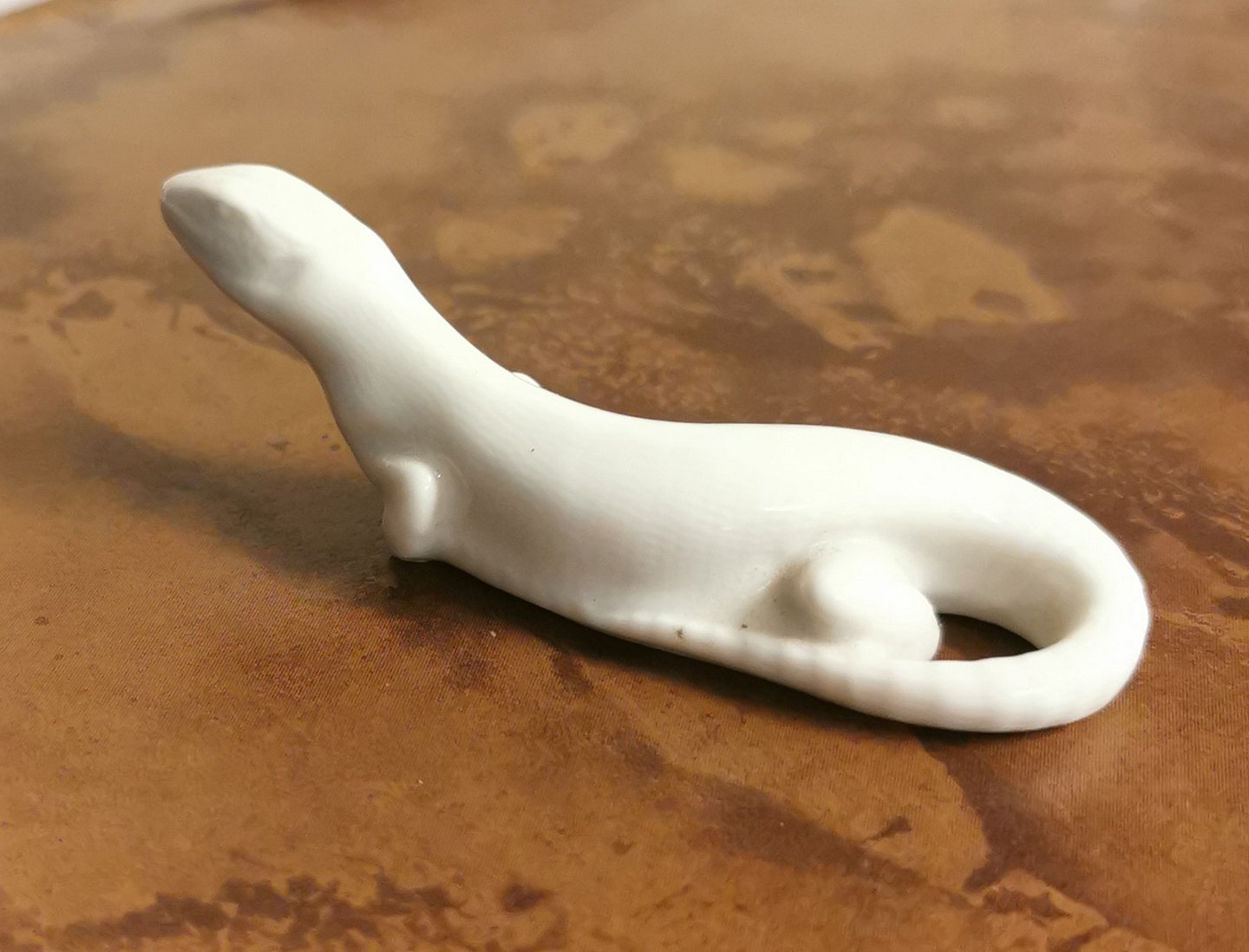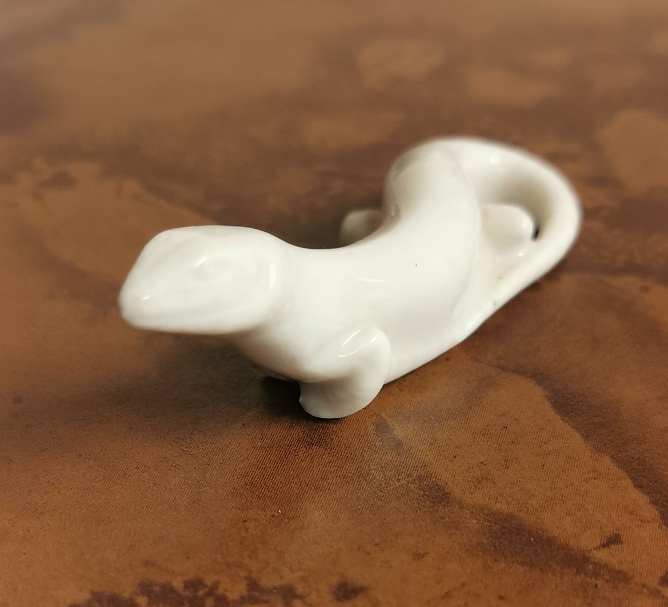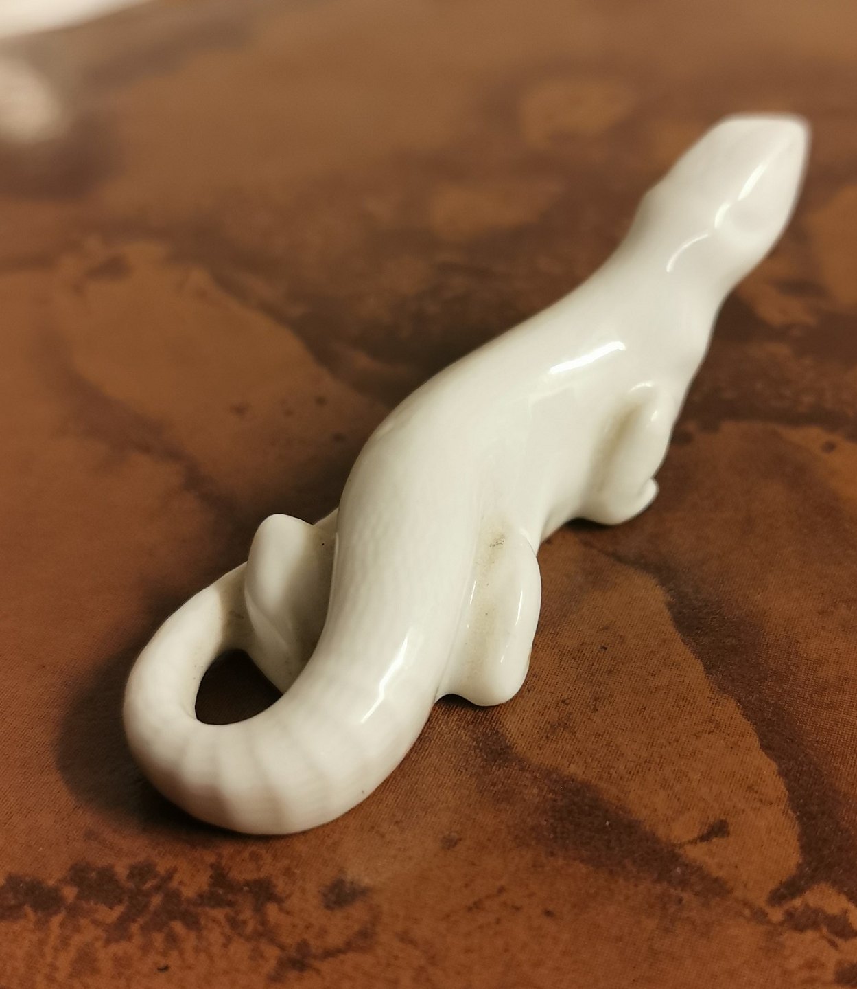 Uhyre sjælden lille Blanc-de-Chine porcelænsfigur af firben fra Royal Copenhagen . Fremstår i perfekt stand. Fabriksmærket på bunden. 1. sortering. Modelnummer 930. Mål: H. 2 cm L. 7 cm.