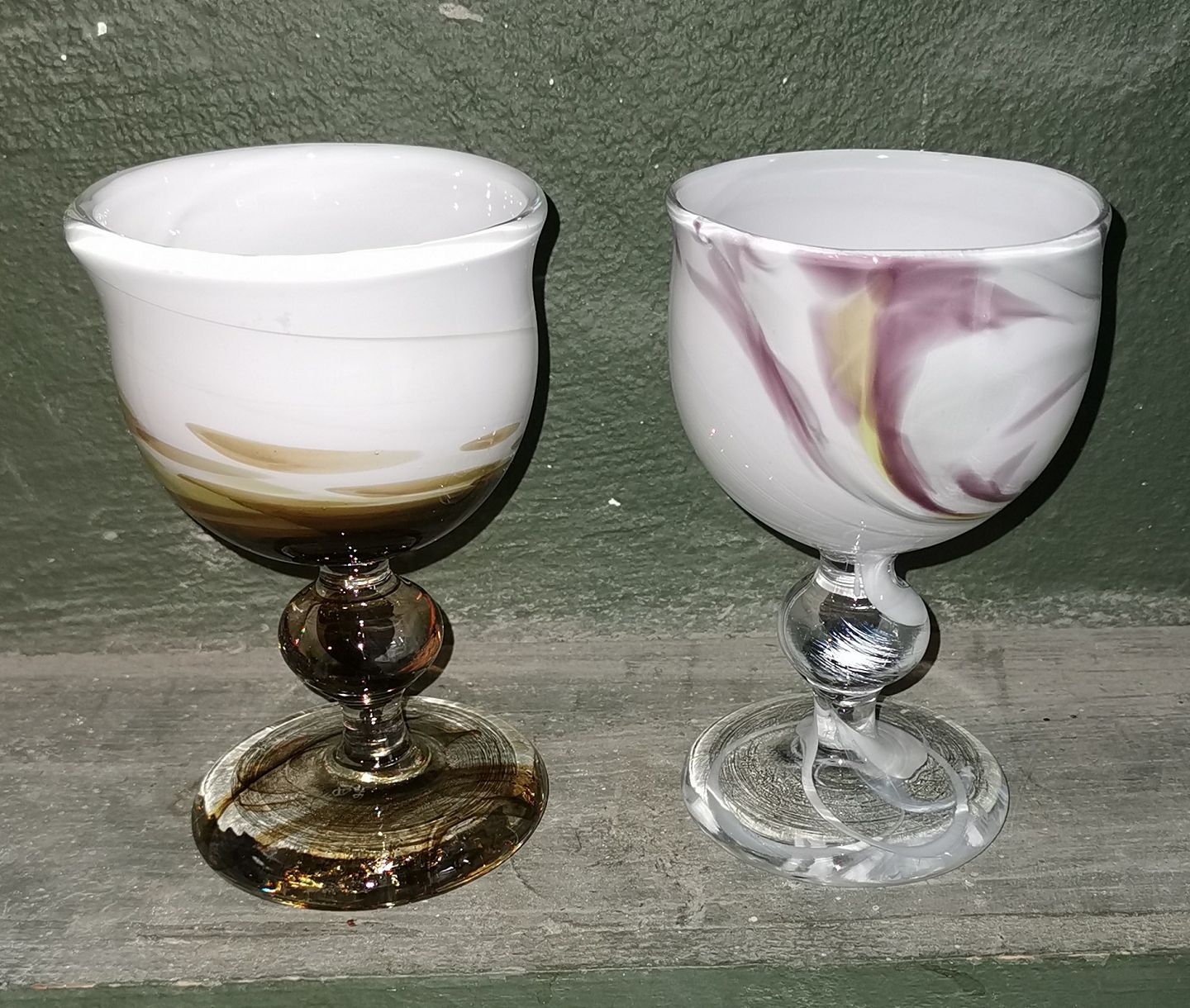To "Cascade" glas fra Holmegaard Glasværk designet af Per Lütken. Begge er signeret og fremstår i god stand. H.