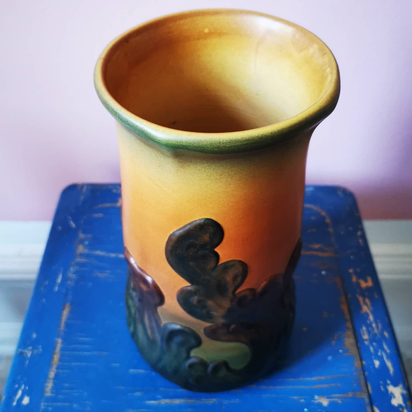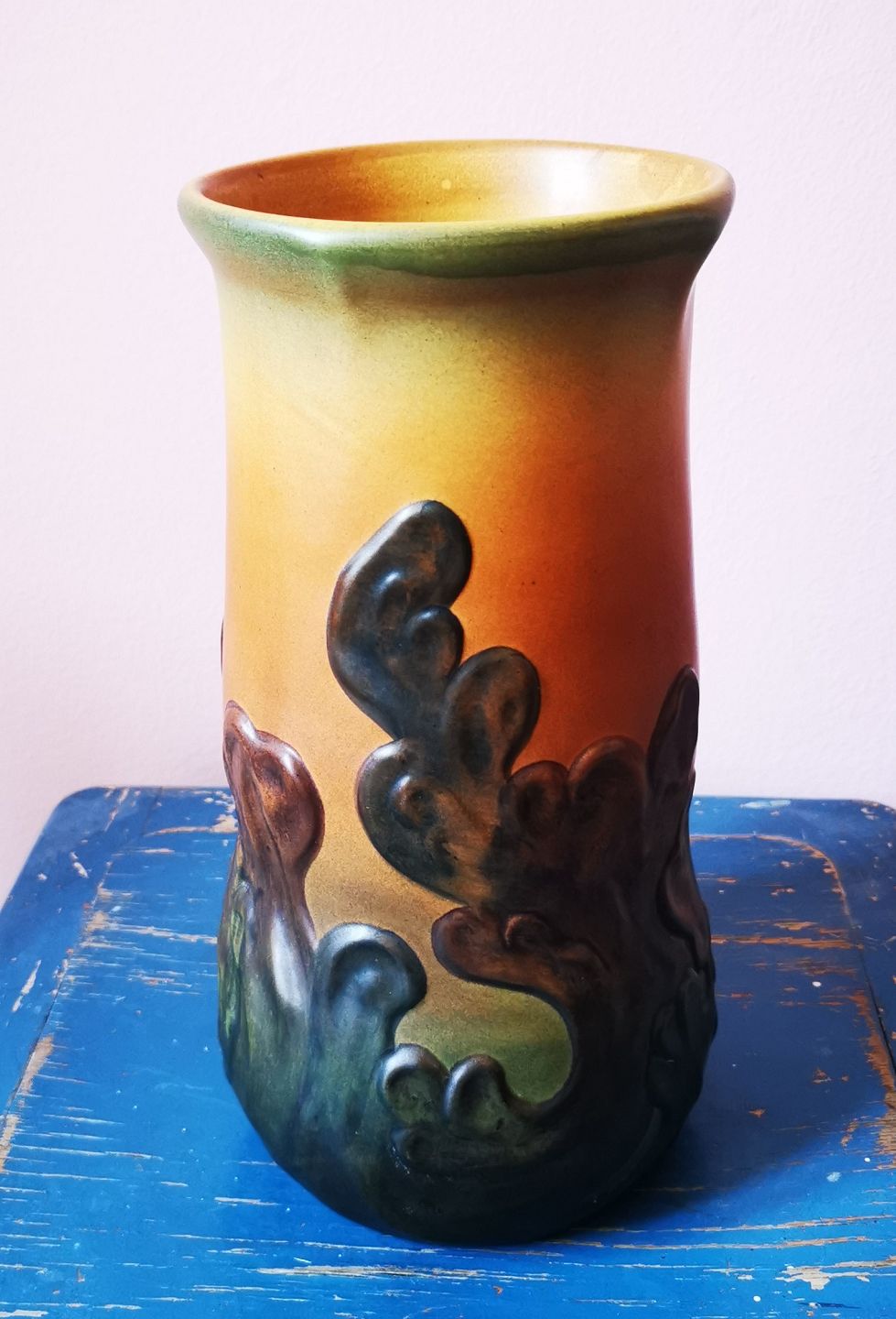 Vase i keramik i skønvirkestil fra den københavnske lervarefabrik Peter Ipsens Enke. Dekoreret med organisk bladværk i relief. Fremstår i god stand uden skader eller reparationer. H. 27 cm. Fabriksmærket på bunden sammen med modelnummer 724.