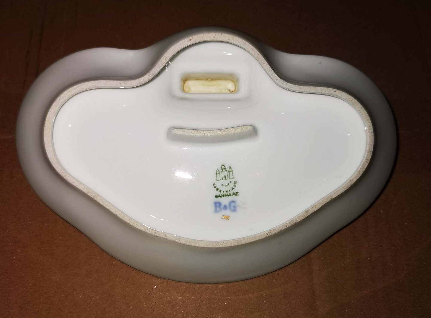Bing & Grøndahl Mågestel skål i porcelæn som tændstikæske-holder. Fremstår i god stand. 1. sortering. Mål: H. 6 cm L. 18½ cm.