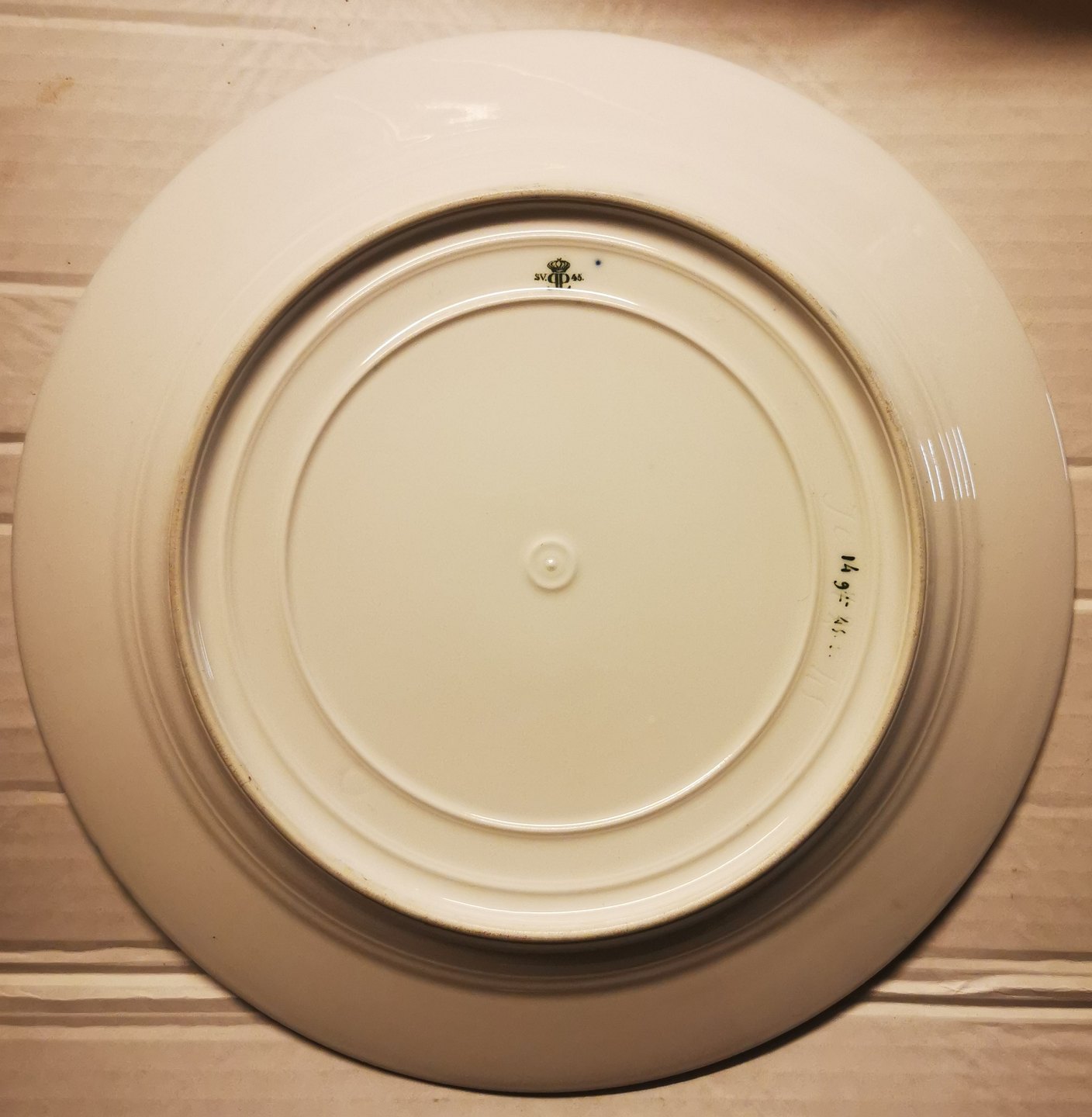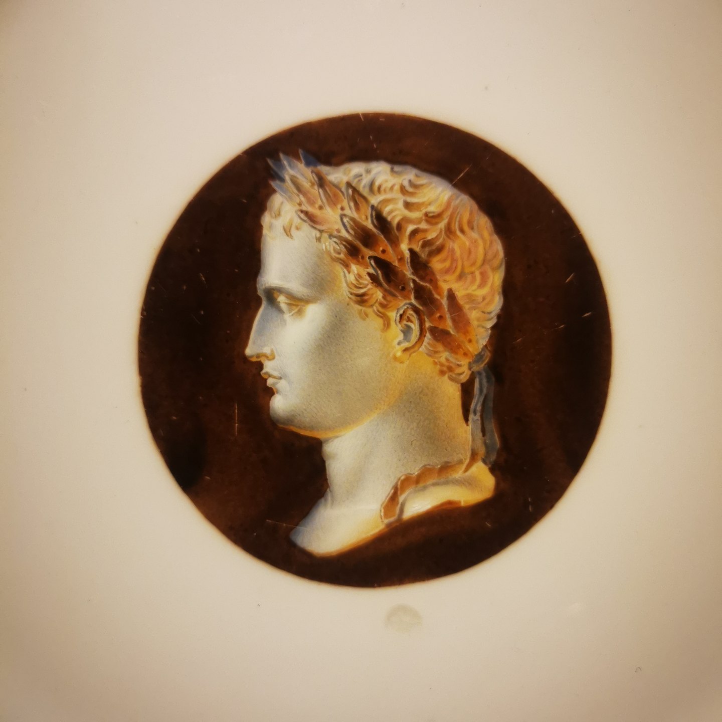 Platte i porcelæn med portræt i profil af Napoleon fra Sevres, Frankrig, 1845. Fremstår i perfekt stand. Ingen skader eller reparationer. Mål: 24,5 cm (9.64 inches).