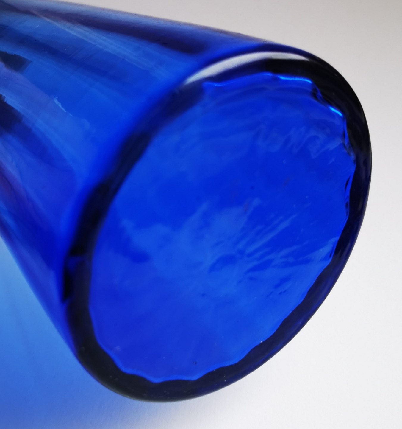 Dansk glasværk hyacint glasvase i blåt glas ca. 1920. Optisk vredet. Fremstår i god stand. Ingen skader eller reparationer. H. 21½ cm