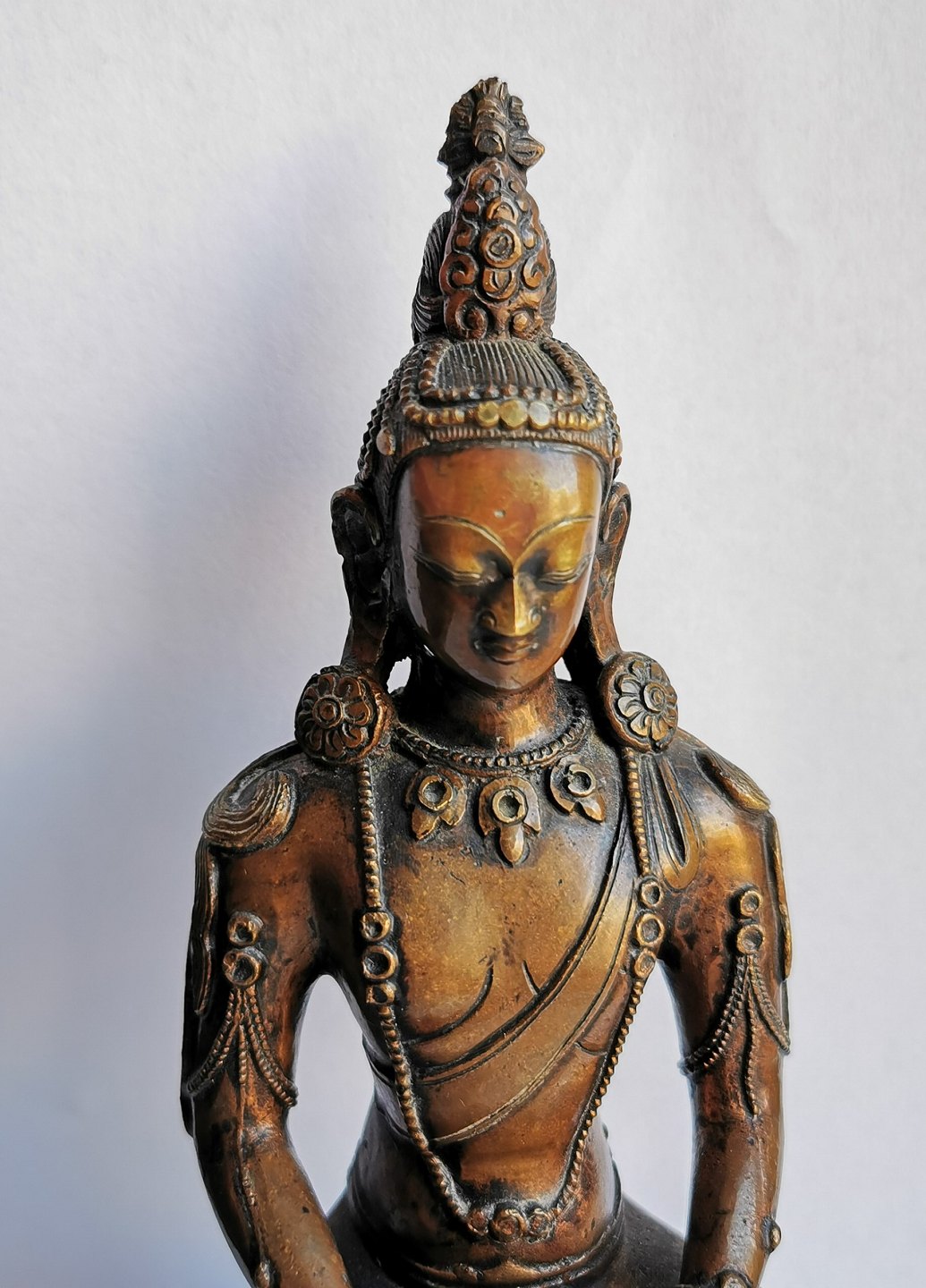 Buddha i bronce. Fremstillet i Thailand. Mange fine små detaljer. Meget fint efterbearbejdning af broncestøbningen. Formodes fremstillet midt i det 20. århundrede. 18 cm høj (7.08 inches).