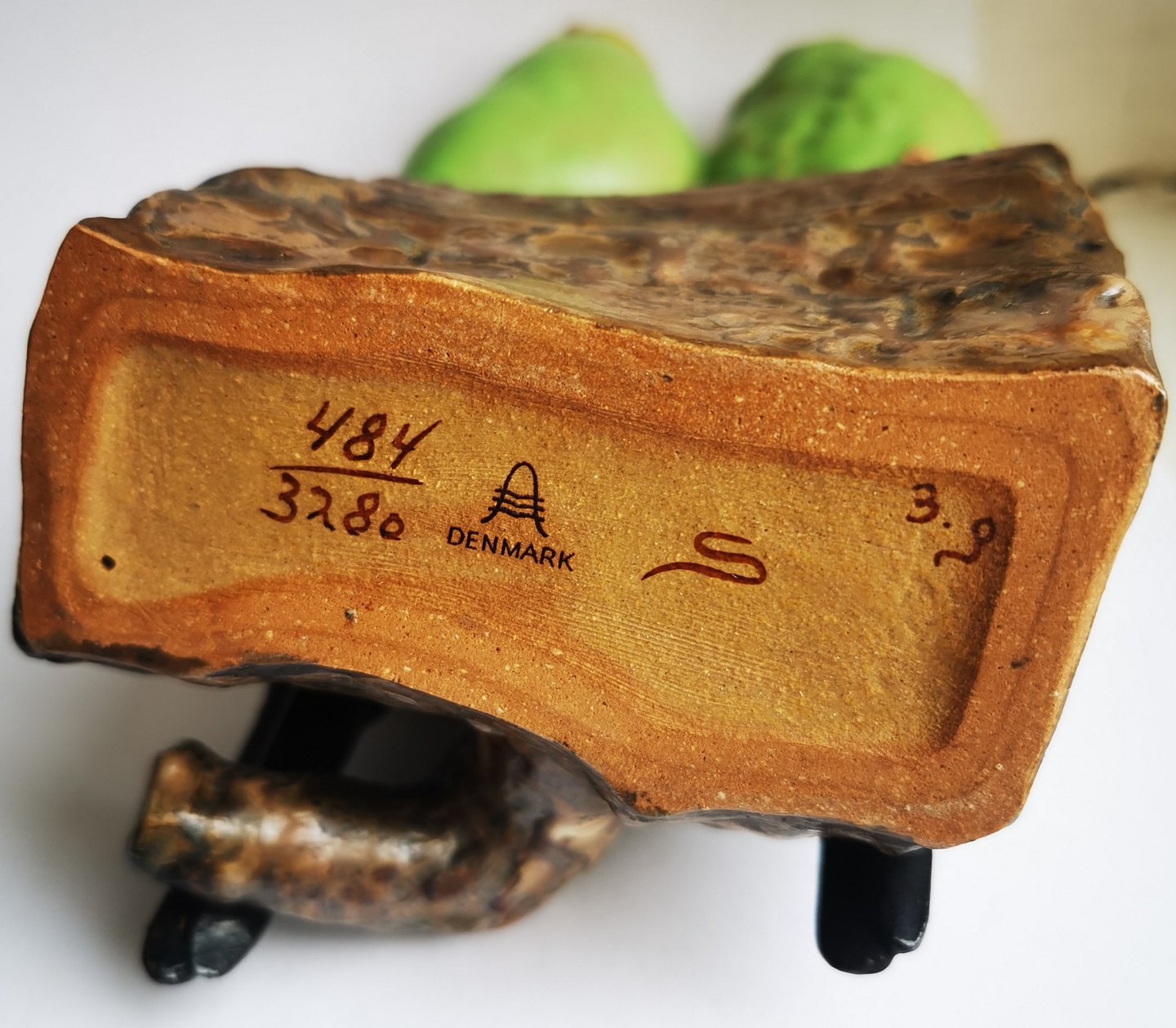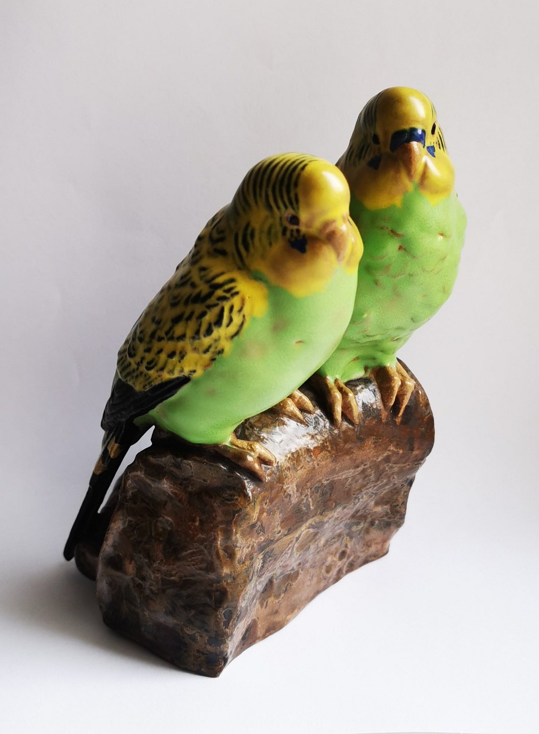 Jeanne Grut: Aluminia figur. Par grønne undulater