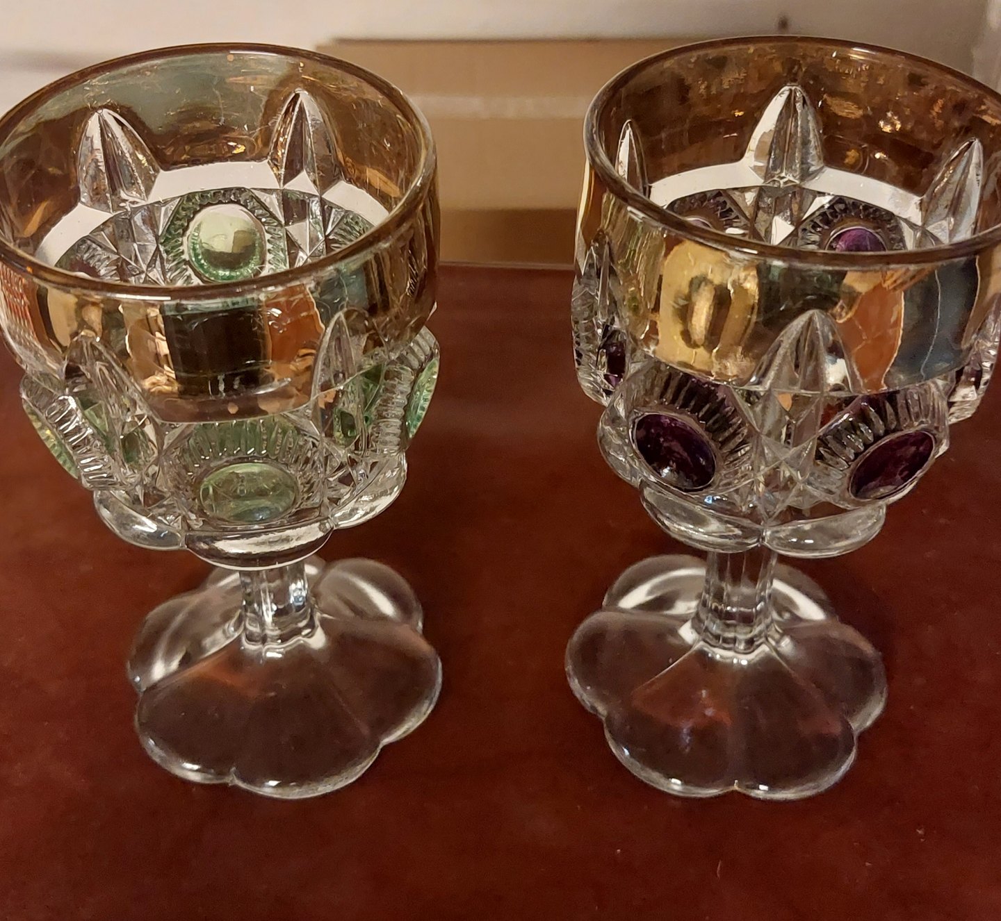 Par presset glas med guldkant. "Amerikanerglas". Fremstår i god stand. Sælges samlet. H. 15 cm (5.90 inches).