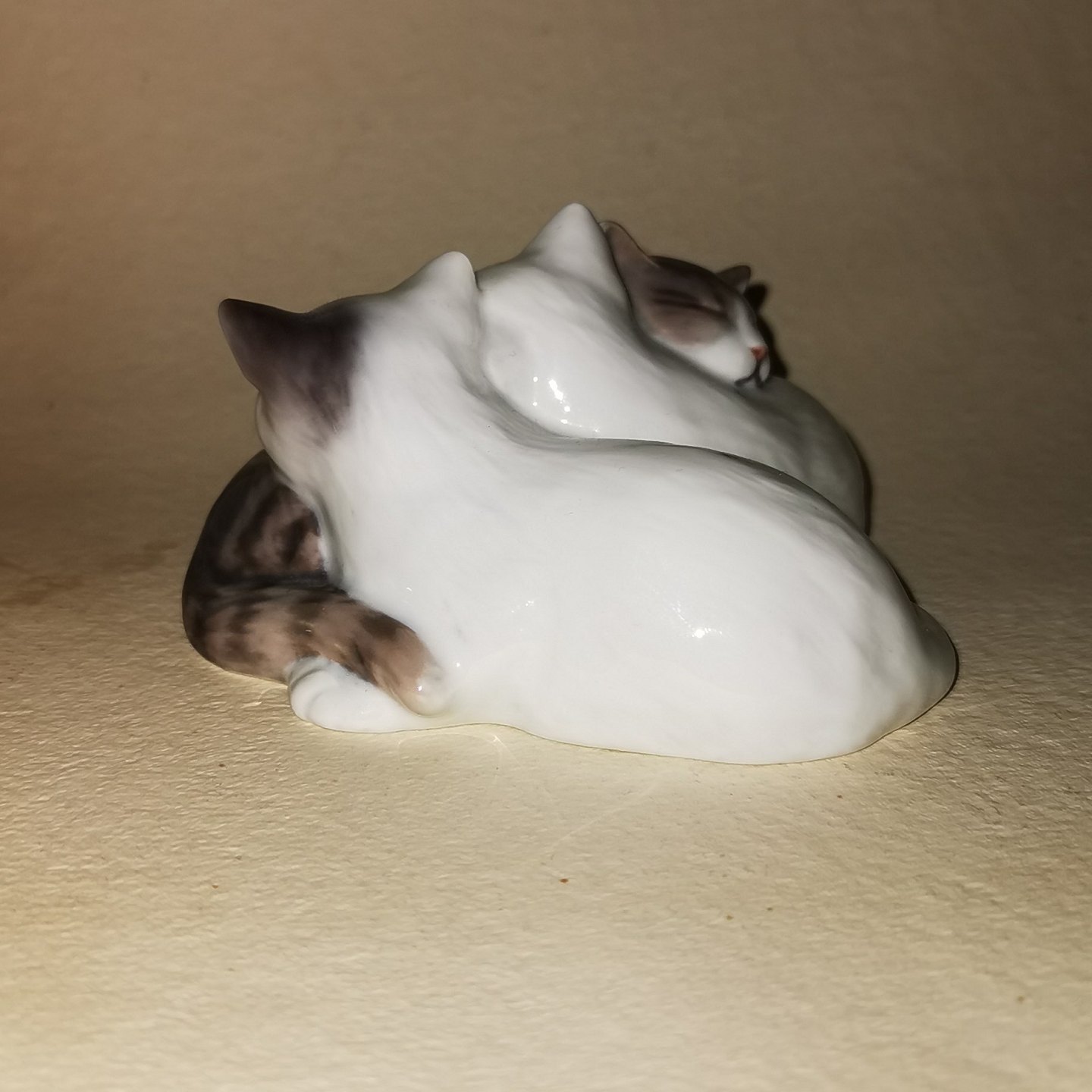 Figur med tre sovende kattekillinger i porcelæn fra Royal Copenhagen. Fremstår i god stand. 1. sortering. Fabriksmærket på bunden sammen med modelnummer 304. Mål: H. 5½ cm (2.16 tommer).