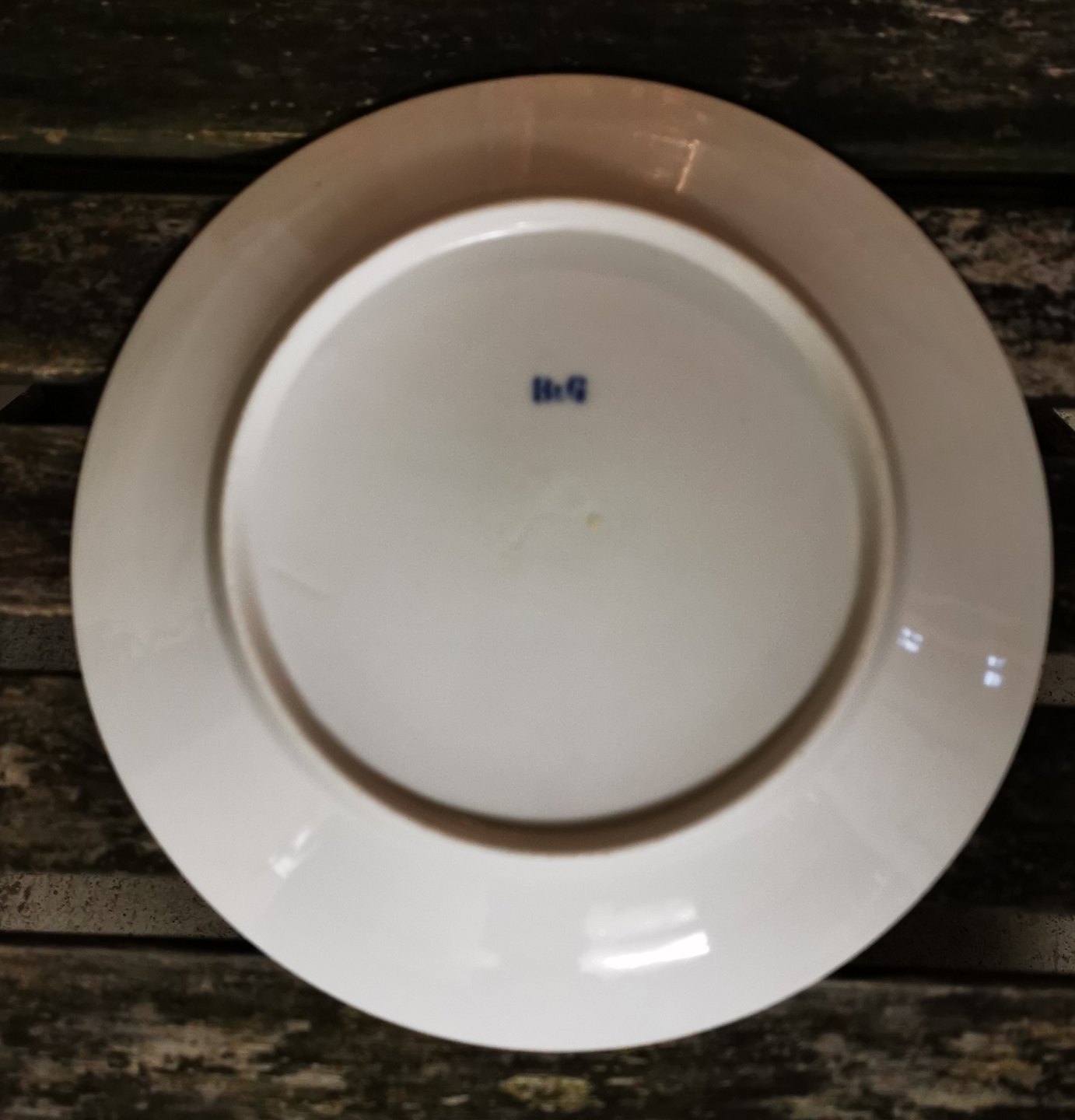 Skønvirkeperioden: Middagstallerken med blomsterdekoration fra omkring 1900.Fremstår i god stand. Fabriksmærket på bagsiden med B&G for Bing & Grøndahl. Alle i god stand. Ø. 24 cm.