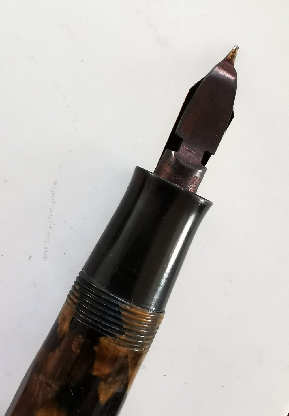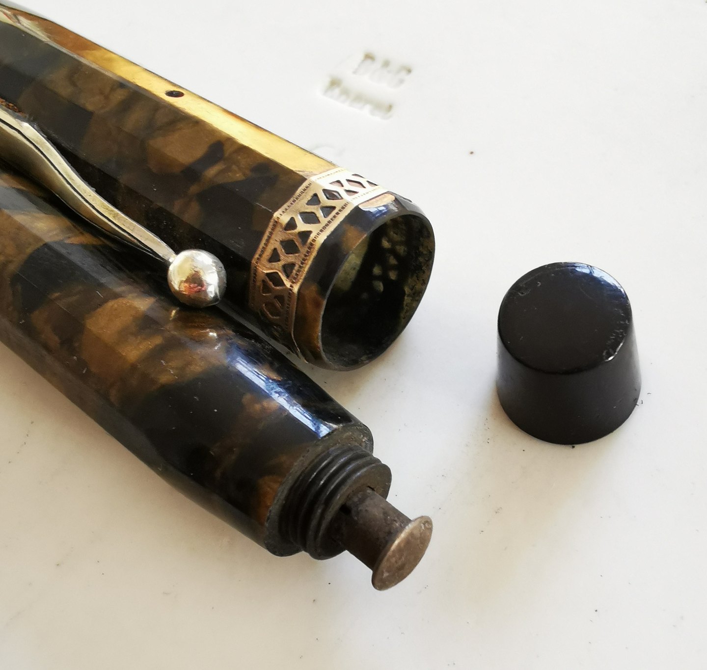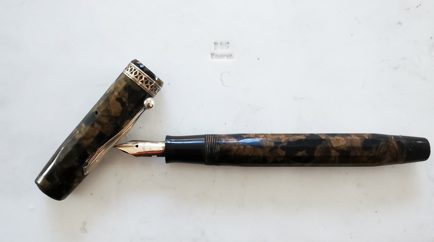 Art Deco style: 12-sided green marbled fountain pen